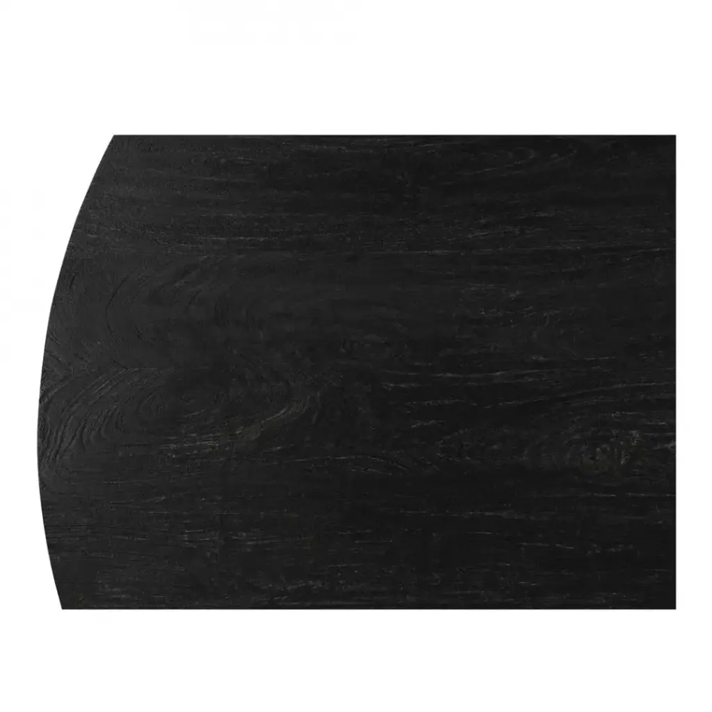 Bold in black with a sandblasted, cerused finish that accentuates the natural wood grain, the Cember dining table adds organic appeal and dramatic presence to any condo or smaller living space. A natural expression of modern rustic style, this piece features an oversized drum-shaped, tapered pedestal base, a solid foundation to a stately silhouette.