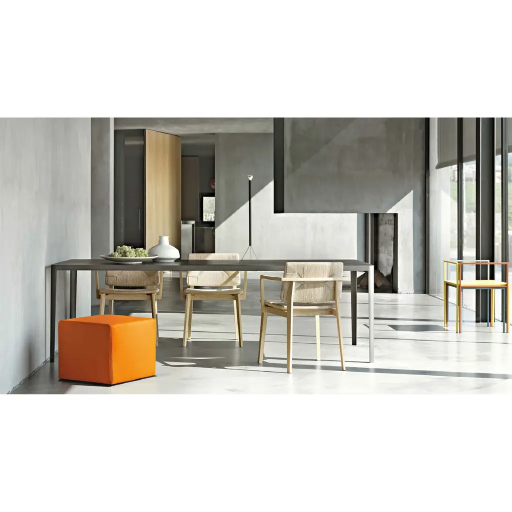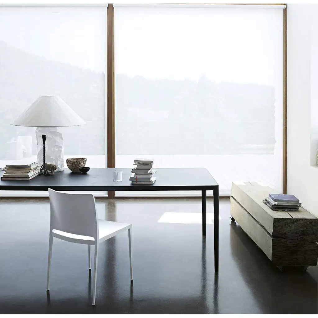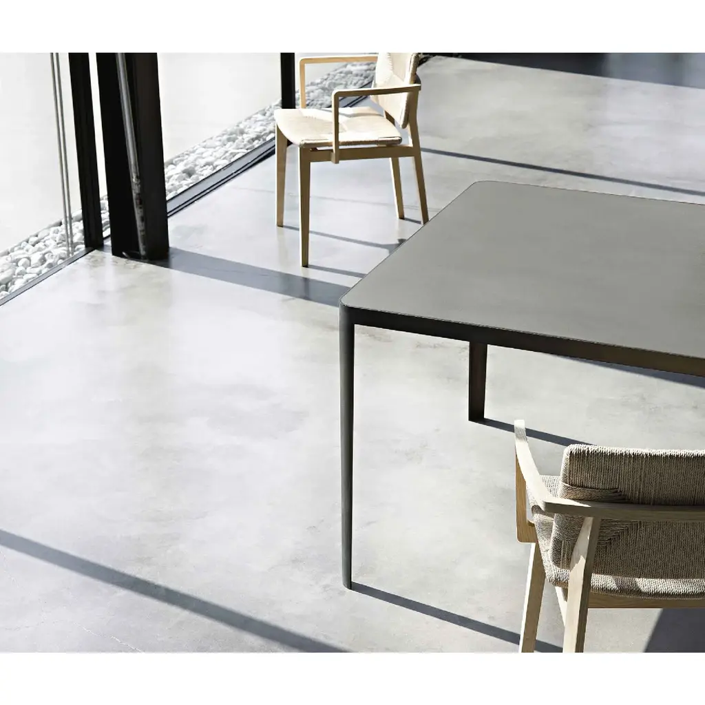 The Cement Top Dining Table by Lema cuts out all superfluous elements to deliver a piece with a bold, elegant design. Its sleek legs, made from sheets of metal, are welded to a frame in the same material, giving the structure a highly sleek appearance. The delicate frame wraps around a cement table top, which completes this sculptural, imposing table. Its simple lines make it perfect for different kinds of spaces, meaning it works well as a dining table, meeting table or desk.