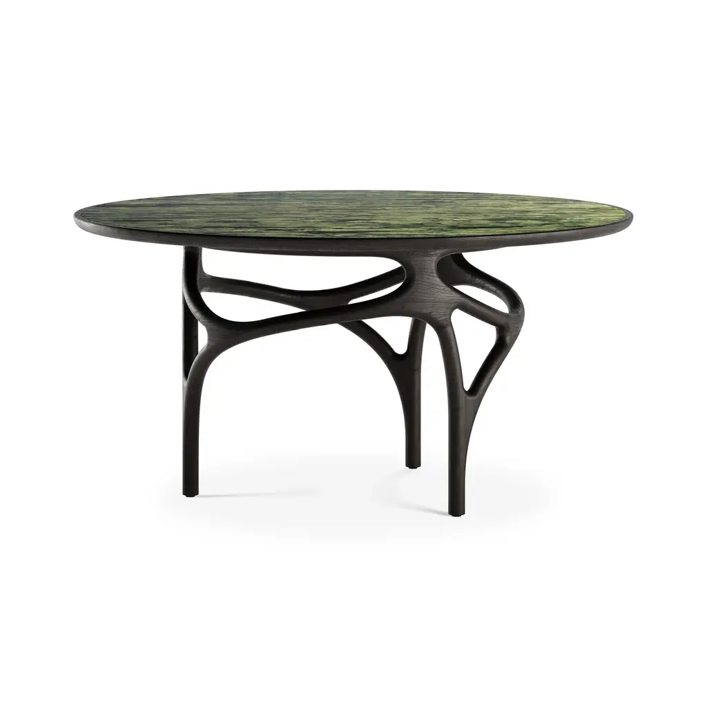 A sculptural tribute to the artistry of the natural world, the Cena Dining Table from Ethnicraft transforms every gathering into a moment of connection. Named after the Italian word for "dinner," this stunning table is defined by its sinuous base, which echoes the intricate twists of tree roots and branches. The tabletop is equally inspired by nature, with a pattern that recalls the organic structures found in honeycombs and other natural forms. A fusion of poetic inspiration and masterful craftsmanship, it’s a sophisticated and unforgettable centerpiece for the contemporary home. Highlights: