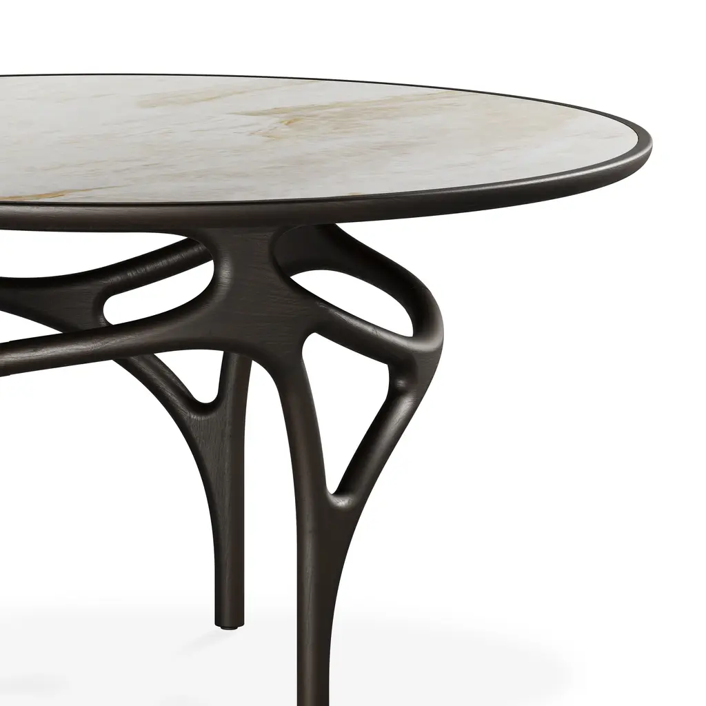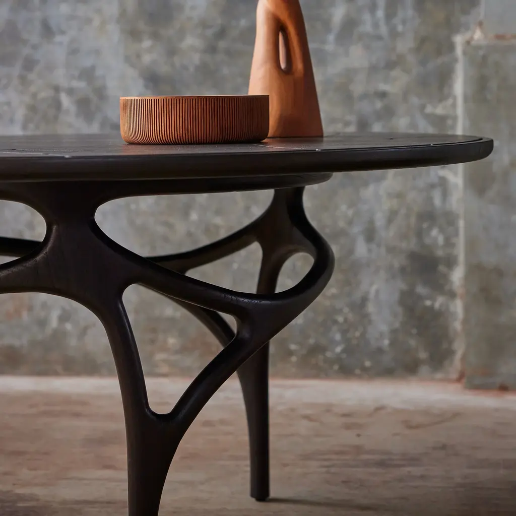 A sculptural tribute to the artistry of the natural world, the Cena Dining Table from Ethnicraft transforms every gathering into a moment of connection. Named after the Italian word for "dinner," this stunning table is defined by its sinuous base, which echoes the intricate twists of tree roots and branches. The tabletop is equally inspired by nature, with a pattern that recalls the organic structures found in honeycombs and other natural forms. A fusion of poetic inspiration and masterful craftsmanship, it’s a sophisticated and unforgettable centerpiece for the contemporary home. Highlights: