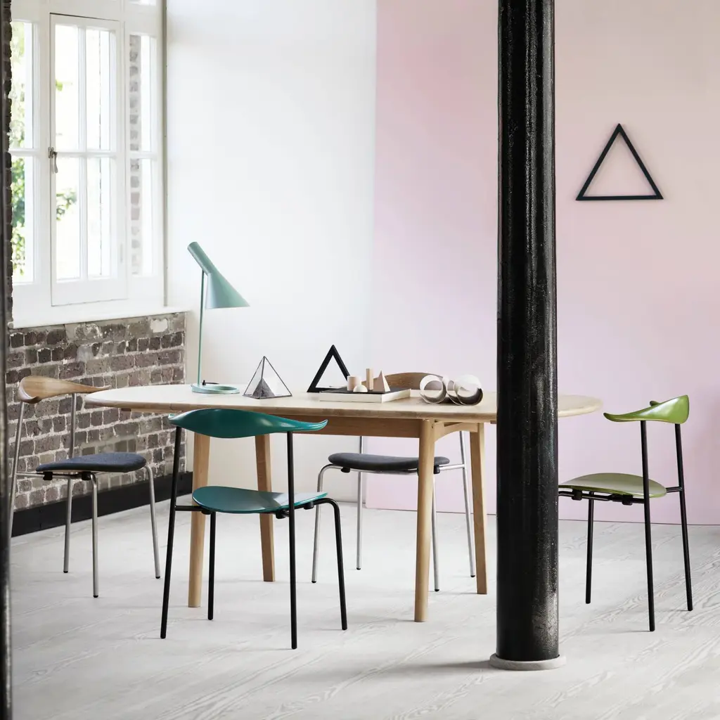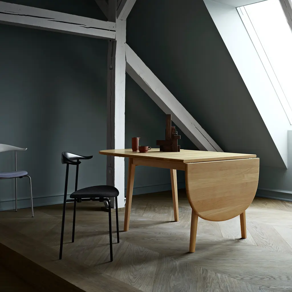 Exquisitely crafted in solid oak or beech, CH002 is the smaller of a pair of dining tables that renowned designer Hans J. Wegner created in 1982. Expressing his signature functional design philosophy, the table is calibrated to fit limited-size spaces, and can be extended easily with its 2 generous hinged leaves at each end. With graceful rounded proportions and tabletop edges, it's a versatile option that takes on a different persona depending on the choice of accompanying dining chair.