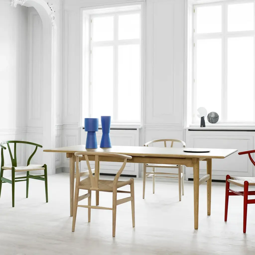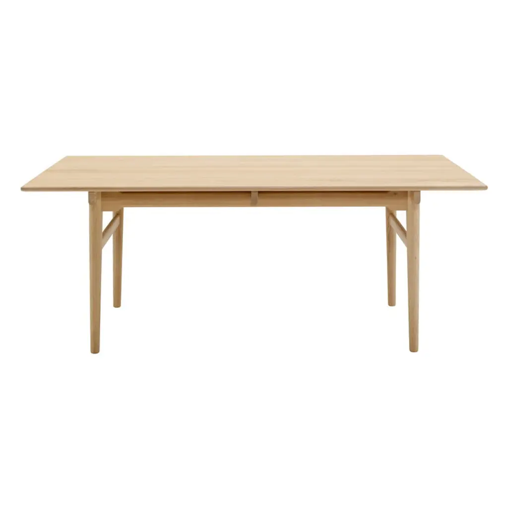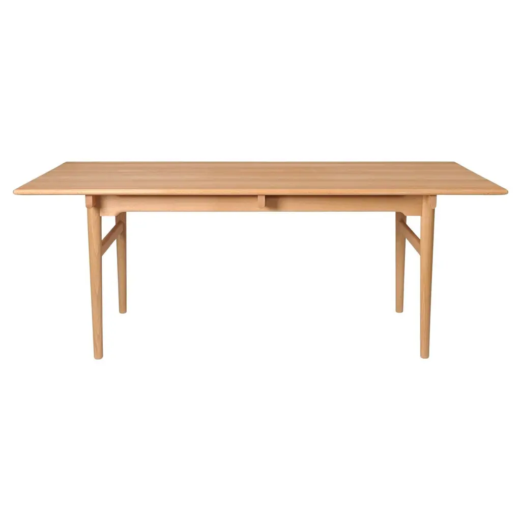 Built for family memories Offering mid-century modern influence, the CH327 Dining Table from Carl Hansen is a high-quality piece of craftsmanship sure to bring style and design to your home. Designed in 1962 by Hans J. Wegner, this dining table is crafted from solid wood and features a beautifully smooth surface with intricate woodgrain details. At just about 75" long, this table can seat six comfortably and anchor your dining space for many years to come. Why We Love It: Features