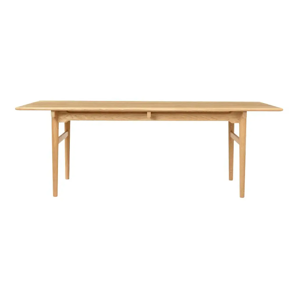 LIMITED EDITION: To celebrate Wegner's 100th birthday, Carl Hansen & Son has released a special walnut / oak combination CH327 Dining Table. This table features an walnut top and a oak frame to highlight Wegner's extraordinary understanding of wood. All other versions of the CH327 table have a top and frame in the same wood. It's no coincidence that Wegner's dining tables complement his chairs perfectly. They are both excellent expressions of his approach to timeless design. Wegner's dining tables reveal his profound understanding of wood and its possibilities. Combined with Carl Hansen & Son's uncompromising selection and workmanship of the best hardwoods, Wegner's tables are a daily pleasure with deep roots in the Danish forests. Form and function always find a perfect balance in Wegner's designs. His tables are as stable as they are comfortable, and their sculptural beauty can be appreciated from any angle. Like his chairs, Wegner's tables demand the very best of skilled craftsmen. His furniture's construction and joints were designed to be stable and beautiful - not to be easy to produce. IMPORTANT: Purchase a compatible Carl Hansen & Son table leaf . The CH327 Dining Table requires minor assembly. Click here for assembly instructions.