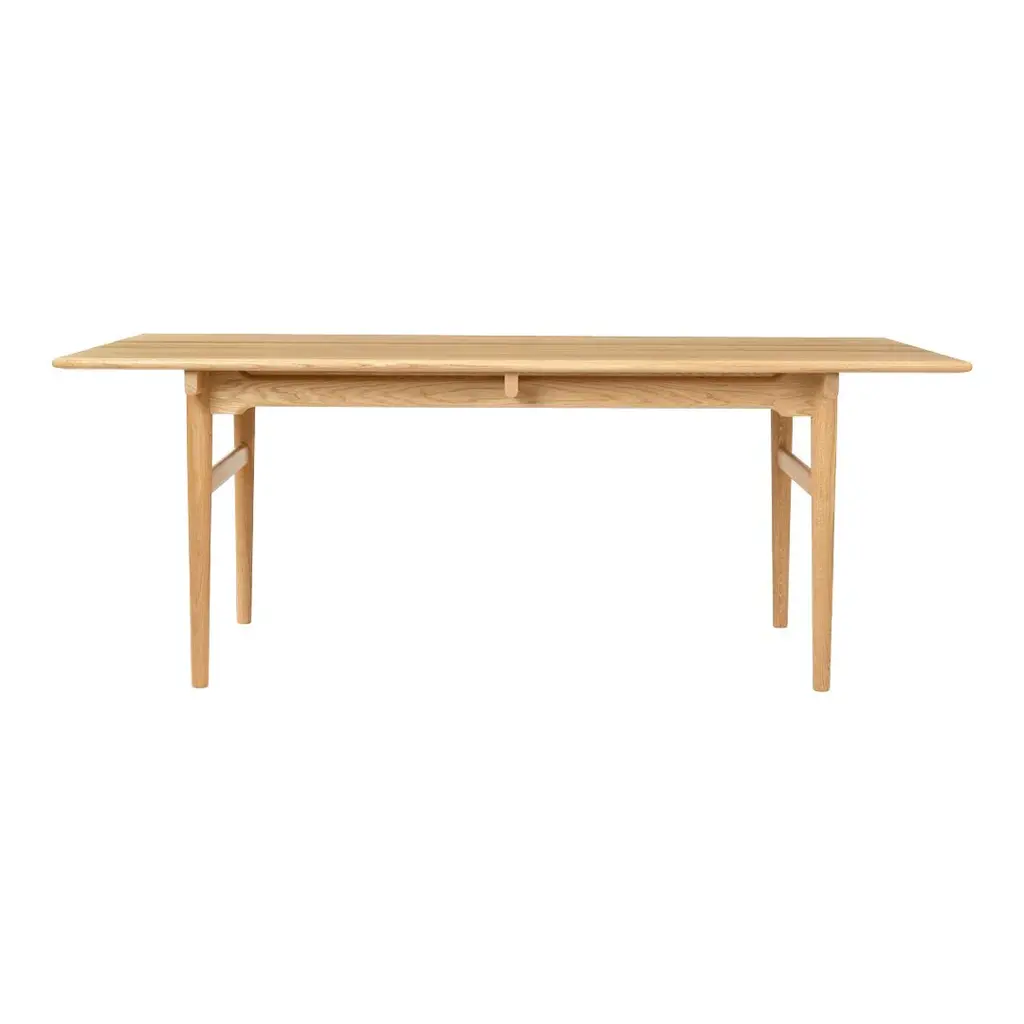 LIMITED EDITION: To celebrate Wegner's 100th birthday, Carl Hansen & Son has released a special walnut / oak combination CH327 Dining Table. This table features an walnut top and a oak frame to highlight Wegner's extraordinary understanding of wood. All other versions of the CH327 table have a top and frame in the same wood. It's no coincidence that Wegner's dining tables complement his chairs perfectly. They are both excellent expressions of his approach to timeless design. Wegner's dining tables reveal his profound understanding of wood and its possibilities. Combined with Carl Hansen & Son's uncompromising selection and workmanship of the best hardwoods, Wegner's tables are a daily pleasure with deep roots in the Danish forests. Form and function always find a perfect balance in Wegner's designs. His tables are as stable as they are comfortable, and their sculptural beauty can be appreciated from any angle. Like his chairs, Wegner's tables demand the very best of skilled craftsmen. His furniture's construction and joints were designed to be stable and beautiful - not to be easy to produce. IMPORTANT: Purchase a compatible Carl Hansen & Son table leaf . The CH327 Dining Table requires minor assembly. Click here for assembly instructions.