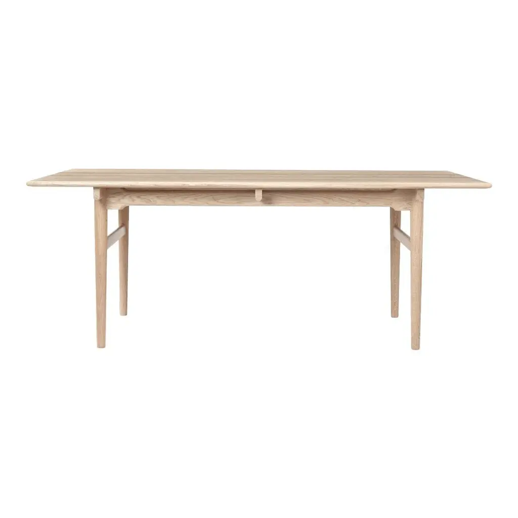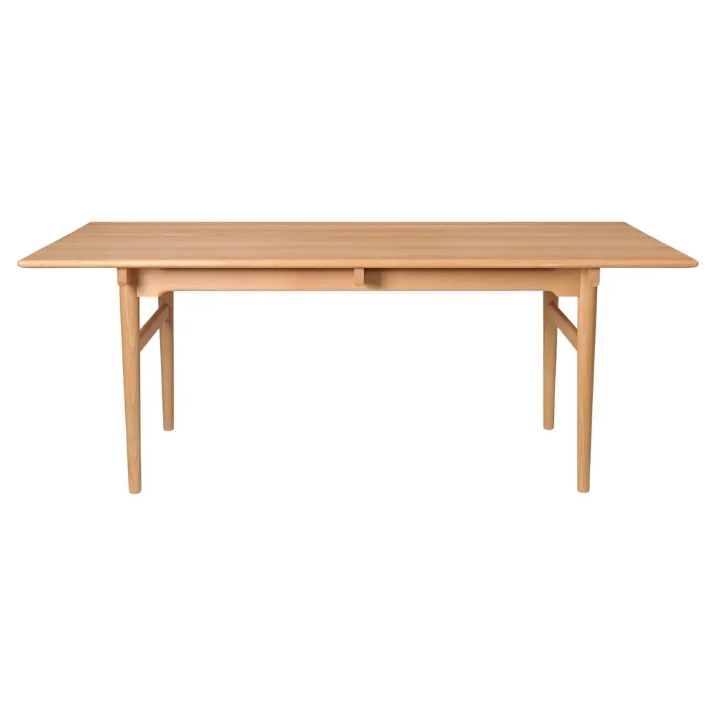 LIMITED EDITION: To celebrate Wegner's 100th birthday, Carl Hansen & Son has released a special walnut / oak combination CH327 Dining Table. This table features an walnut top and a oak frame to highlight Wegner's extraordinary understanding of wood. All other versions of the CH327 table have a top and frame in the same wood. It's no coincidence that Wegner's dining tables complement his chairs perfectly. They are both excellent expressions of his approach to timeless design. Wegner's dining tables reveal his profound understanding of wood and its possibilities. Combined with Carl Hansen & Son's uncompromising selection and workmanship of the best hardwoods, Wegner's tables are a daily pleasure with deep roots in the Danish forests. Form and function always find a perfect balance in Wegner's designs. His tables are as stable as they are comfortable, and their sculptural beauty can be appreciated from any angle. Like his chairs, Wegner's tables demand the very best of skilled craftsmen. His furniture's construction and joints were designed to be stable and beautiful - not to be easy to produce. IMPORTANT: Purchase a compatible Carl Hansen & Son table leaf . The CH327 Dining Table requires minor assembly. Click here for assembly instructions.