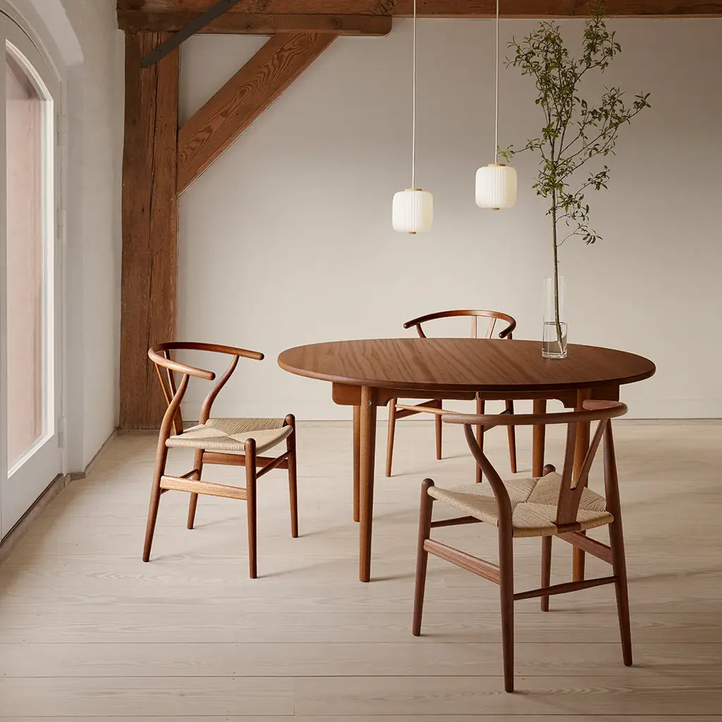 It's no coincidence that Wegner's dining tables complement his chairs perfectly. They are both excellent expressions of his approach to timeless design. Wegner's dining tables reveal his profound understanding of wood and its possibilities. Combined with Carl Hansen & Son's uncompromising selection and workmanship of the best hardwoods, Wegner's tables are a daily pleasure with deep roots in the Danish forests. Form and function always find a perfect balance in Wegner's designs. His tables are as stable as they are comfortable, and their sculptural beauty can be appreciated from any angle. Like his chairs, Wegner's tables demand the very best of skilled craftsmen. His furniture's construction and joints were designed to be stable and beautiful - not to be easy to produce. TABLE LEAF COMPATIBLE: Purchase a compatible Carl Hansen & Son table leaf . The CH337 Dining Table requires some assembly. Click here for instructions.