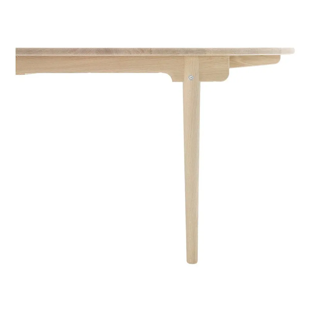 The CH338 Dining Table comes with 1 supporting wooden leg and hardware for 2 leaves (sold separately) , or with 4 supporting wooden legs and hardware for 4 leaves (sold separately). NOTE: Please note that if the table is ordered with more than one solid wooden leaf, only one leaf is produced from the exact same wood as the table top. Minor variations may occur in other leaves. Purchase a compatible Carl Hansen & Son table leaf . The CH338 Dining Table requires some assembly. Click here for instructions.