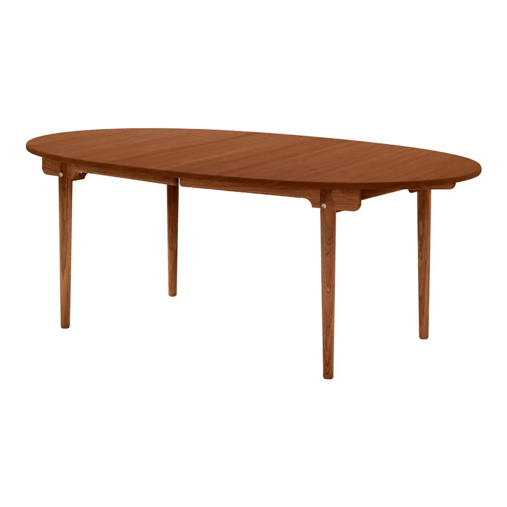 The CH338 Dining Table comes with 1 supporting wooden leg and hardware for 2 leaves (sold separately) , or with 4 supporting wooden legs and hardware for 4 leaves (sold separately). NOTE: Please note that if the table is ordered with more than one solid wooden leaf, only one leaf is produced from the exact same wood as the table top. Minor variations may occur in other leaves. Purchase a compatible Carl Hansen & Son table leaf . The CH338 Dining Table requires some assembly. Click here for instructions.