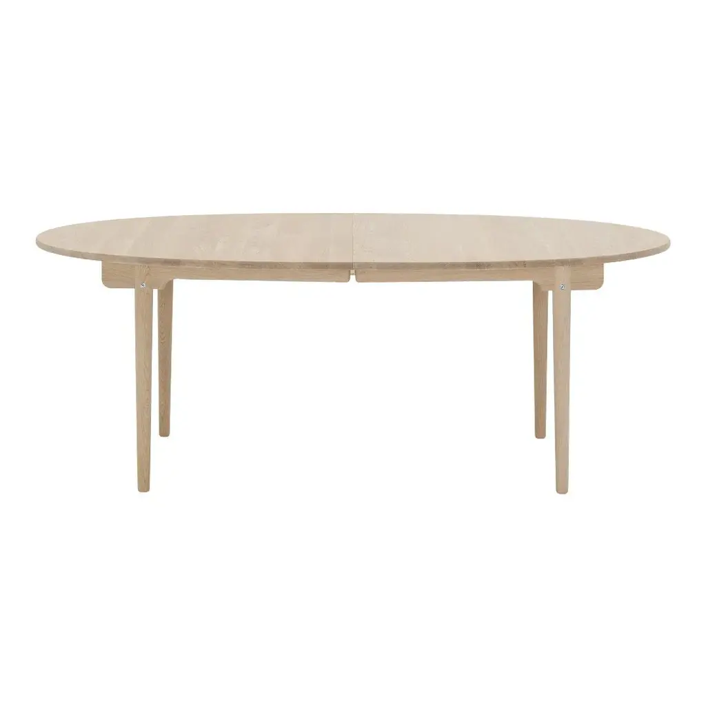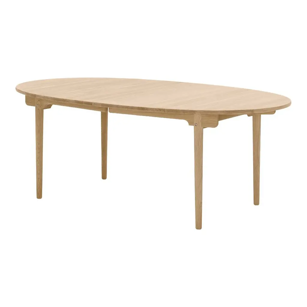 The CH338 Dining Table comes with 1 supporting wooden leg and hardware for 2 leaves (sold separately) , or with 4 supporting wooden legs and hardware for 4 leaves (sold separately). NOTE: Please note that if the table is ordered with more than one solid wooden leaf, only one leaf is produced from the exact same wood as the table top. Minor variations may occur in other leaves. Purchase a compatible Carl Hansen & Son table leaf . The CH338 Dining Table requires some assembly. Click here for instructions.