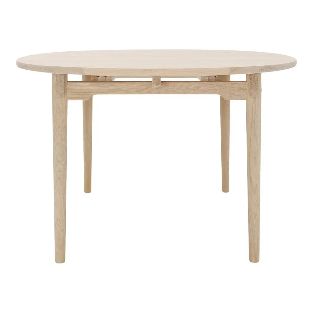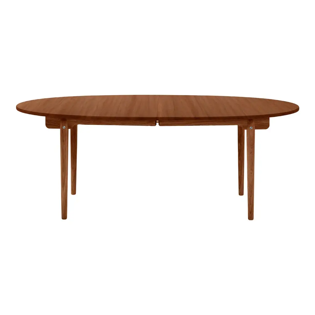 The CH338 Dining Table comes with 1 supporting wooden leg and hardware for 2 leaves (sold separately) , or with 4 supporting wooden legs and hardware for 4 leaves (sold separately). NOTE: Please note that if the table is ordered with more than one solid wooden leaf, only one leaf is produced from the exact same wood as the table top. Minor variations may occur in other leaves. Purchase a compatible Carl Hansen & Son table leaf . The CH338 Dining Table requires some assembly. Click here for instructions.