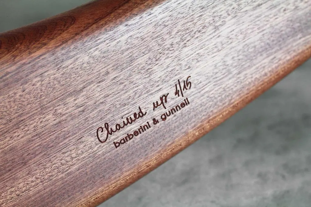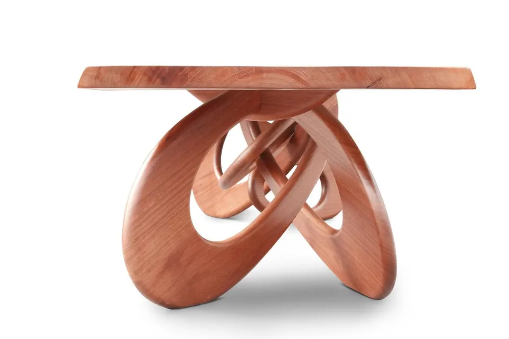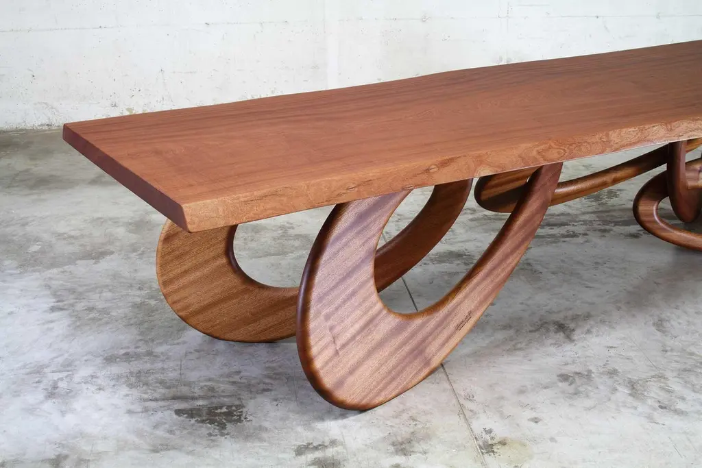 Chained Up Dining Table by Barberini & GunnellLimited Edition of 15Dimensions: D 120 x W 320 x H 76 cm.Materials: Solid wood.The inspiration for this table came from observing the gigantic iron chains that are used for tying up enormous container ships or Transatlantic Cruisers. Spending hours at the port we were intrigued by finding a way to build a table structure in the shape of a chain, every bangle connected to the other. Closing the chain, yet achieving a stable table structure while at the same time not losing the esthetic beauty of the finished work was the challenge of this table.Limited Edition, signed and numbered by the artists, comes with a Certificate of Authenticity.Barberini & Gunnell, founded in 2009 in Ancona, Italy by architects Francesco Barberini and Nina A. Gunnell, is the result of a philosophy, thinking of design and architecture as a work of art. The architectural and interior design activity carried out by ‘The Studio’ complements the creations of ‘The Atelier’, which are the result of an artistic playground and highly skilled craftsmanship, a place where artworks and sculptures come to life.The Studio Barberini & Gunnell designs high-end residential and retail spaces that are out of the ordinary and beyond fashion. Barberini & Gunnell creates refined, timeless, and harmonious environments by inserting collectible design, “talking pieces” that create unique and bespoke homes according to the client’s eclectic and aesthetic desires.The Atelier Barberini & Gunnell creates artworks and collectible designs, one-off pieces, and limited editions for a small niche of high-end projects; bespoke solutions for luxury and ultra-luxury projects all over the world.The choice of the most precious materials, the maniacal cure for detail is the basis of our modus operandi aiming to create timeless pieces, using marine grade stainless steel, brass, cast bronze, precious wood essences, marbles, onyxes, semi-precious gemstones, crystal glass, together with the most sophisticated technologies and quality craftsmanship.This allows us to work for clients like Four Seasons Hotels, The Ritz Carlton, Regent Seven Seas Cruises, Louis Vuitton, Cartier, Dior, Paramount Pictures, Peter Marino Architects, Sotheby’s, Bonhams, Foundation of Maestro Andrea Bocelli, Ridley Scott (House of Gucci) besides our private collectors and clients.Values such as sustainability, the use of natural materials, the rediscovery of eco-sustainable craftsmanship, and the protection of refined and ancient techniques that are increasingly being lost are the basis of the design.Barberini & Gunnell’s signature works are exhibited at international art fairs such as Art Basel Design//Miami, Art Miami, Art Basel Switzerland, PAD London, PAD Genève, PAD Paris, PAD Monaco, Salon Art+Design New York…