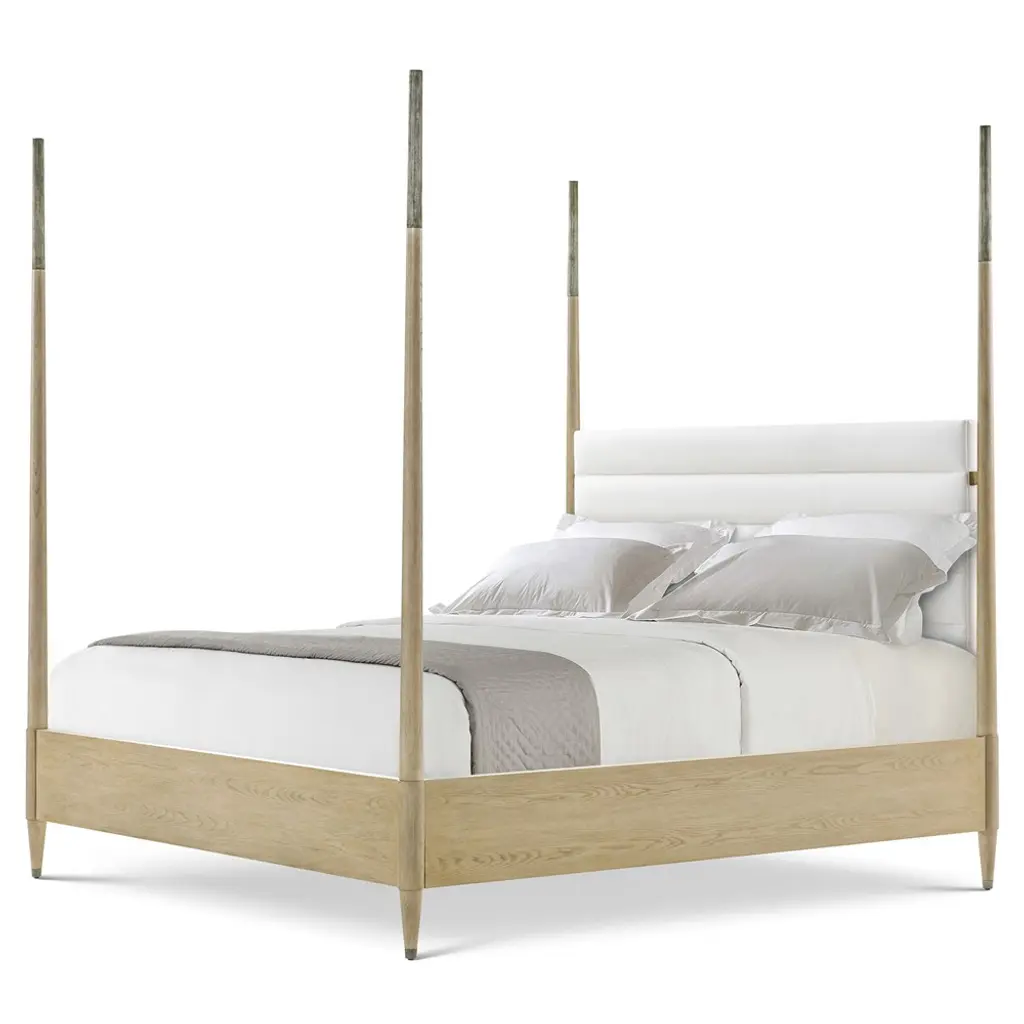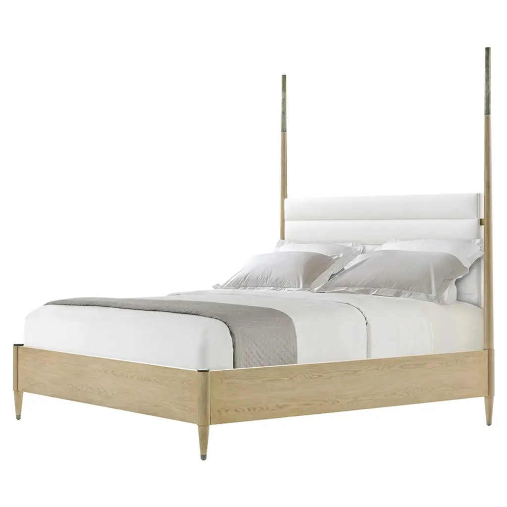 Charlotte Modern Classic Grey Oak Tufted Four Poster Bed - King