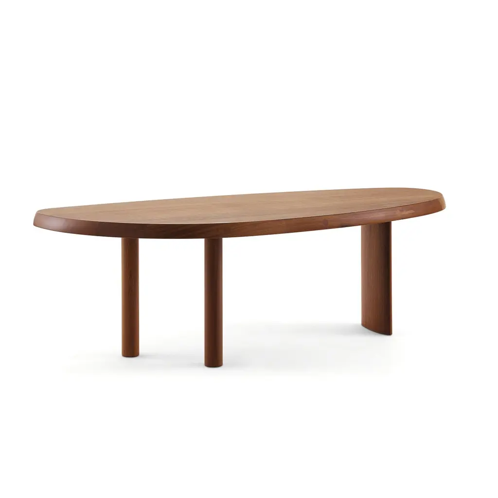 Table designed by Charlotte Perriand in 1959. Relaunched by Cassina in 2011.Manufactured by Cassina in Italy.Charlotte Perriand started work on the tables en forme libre in 1938. Originally intended for her own atelier in the Montparnasse area of central Paris, they went into production courtesy of Galerie Steph Simon at the end of the 1950s. All rounded edges, and asymmetrical lines, these tables are perfectly suited to accommodating up to eight guests in small spaces. The table has three legs: one is oval with a wider footprint, the other two are smaller and are cylinder-shaped. In 2011, Cassina re-issued this piece, reducing the width of the legs to offer more space and allow guests to sit closer to each other on convivial occasions. The table-top is composed of wooden staves that slot into each other, the joins being seen at the ends, testifying to the Cassina company’s exceptional carpentry skills; any variations in the wood are part of the very nature of the raw material and serve to highlight its inherent beauty.Important information regarding images of products:Please note that some of the images show other colors and variations of the model, these images are only to present interior design proposals. The item that is selling is on the first image. Important information regarding color(s) of products:Actual colors may vary. This is due to the fact that every computer monitor, laptop, tablet and phone screen has a different capability to display colors and that everyone sees these colors differently. We try to edit our photos to show all of our products as life-like as possible, but please understand the actual color may vary slightly from your monitorAbout the designer:Charlotte Perriand full membership of that avant-garde cultural movement which, from the first decades of the 20th century, brought about a profound change in aesthetic values and gave birth to a truly modern sensitivity towards everyday life. In this context, her specific contribution focuses on interior composition, conceived as creating a new way of living, still today at the heart of contemporary lifestyle.In the sphere of 20th century furnishing history, the advent of modernity made possible the entrepreneurial audacity of this true reformer of interior design. At the beginning of her professional career she was acclaimed by critics for her Bar under the roof, exhibited at the Salon d’Automne in 1927 and constructed entirely in nickel-plated copper and anodized aluminium. In the same year, when she was just twenty-four years old, she began a decade-long collaboration with Le Corbusier and Pierre Jeanneret, at the famous design studios at 35, rue de Sèvres in Paris.Her presence in the Le Corbusier studio is visible in all the furnishings designed with him and with Pierre Jeanneret: and so Charlotte Perriand becomes a cornerstone in the reformation project promoted by the architect, adding a distinct dimension of humaneness to the often cold rationalism of Le Corbusier. In her creations she manages to animate the fundamental substance of daily life with new aesthetic values: in particular her talent and intuition in the discovery and use of new materials manifest themselves to their full extent.The ten-year long collaboration with Le Corbusier and Pierre Jeanneret, and her Japanese experience, represent periods of intense creative effervescence in the life of the artist. During her long stay in the Far East (‘40-‘46), she reveals her artistic talent to the full, through a reinterpretation of the reality of life to echo both tradition and modernity. By way of example, worthy of mention are the furnishings produced using traditional bamboo processing techniques, capable of enhancing the new forms already experimented using steel-tubing.After her work as a professional, she concentrates on a series of original and balanced productions, commissioned by top-level authorities and leading companies of the calibre of Air France, and by a number of foreign organizations, authenticating the fame she had by now gained on the international scene.About the manufacturer:In a continuing dialogue between past, present, and future, Cassina has created the I Maestri collection, revisiting furnishing designs by the twentieth century’s best-known architects, including Le Corbusier, Pierre Jeanneret, Charlotte Perriand, Charles Rennie Mackintosh, Gerrit Thomas Rietveld, Franco Albini, Frank Lloyd Wright and Marco Zanuso. While the designs and functional concepts have been precisely preserved, the models have been manufactured using evolved technology. This is also the company that has manufactured iconic pieces of contemporary design from the 1950s to the present day, ideated by some of the most important international designers. Today Cassina continues to look to the future of design with audacious, passionate curiosity and an open, holistic approach. It affirms its exclusive ability to furnish a home’s living and dining spaces completely and iconically with The Cassina Perspective: a concept, a philosophy, an informed, futuristic thought. A detailed, expansive horizon of combinations; when placed together, the products have an innovative soul and the modern icons create authentic, welcoming, personal atmospheres involved in a conversation dominated by a code of design excellence, formal sensitive awareness, solidity and cultural authority.