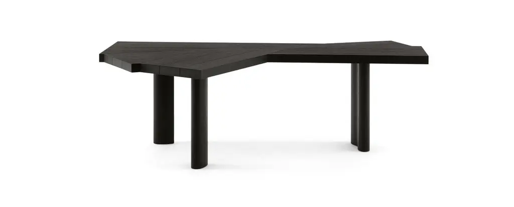 Table designed by Charlotte Perriand in 1972. Relaunched by Cassina in 2014.Manufactured by Cassina in Italy.Revolutionary as much as it is quite different from any other in terms of shape and potential, this multifunctional table is a perfect summation of Charlotte Perriand’s take on l’art de vivre.The structure consists of the simple but perfect placement of fourteen staves placed side-by-side, assembled with signature style by Cassina’s carpenters. Each of these elements combines into an extremely elegant, fan-shaped and versatile whole, lending itself to a dynamic and innovative applications whatever the situation. Depending on the choice of width of the central part, Ventaglio can, when used as a dining table, accommodate between five and nine guests. In the office, several people can sit round Ventaglio’s asymmetrical desk-top, with plenty of room for computers and other professional tools. Important information regarding images of products:Please note that some of the images show other colors and variations of the model, these images are only to present interior design proposals. The item that is selling is on the first image. Important information regarding color(s) of products:Actual colors may vary. This is due to the fact that every computer monitor, laptop, tablet and phone screen has a different capability to display colors and that everyone sees these colors differently. We try to edit our photos to show all of our products as life-like as possible, but please understand the actual color may vary slightly from your monitorAbout the designer:Charlotte Perriand full membership of that avant-garde cultural movement which, from the first decades of the 20th century, brought about a profound change in aesthetic values and gave birth to a truly modern sensitivity towards everyday life. In this context, her specific contribution focuses on interior composition, conceived as creating a new way of living, still today at the heart of contemporary lifestyle.In the sphere of 20th century furnishing history, the advent of modernity made possible the entrepreneurial audacity of this true reformer of interior design. At the beginning of her professional career she was acclaimed by critics for her Bar under the roof, exhibited at the Salon d’Automne in 1927 and constructed entirely in nickel-plated copper and anodized aluminium. In the same year, when she was just twenty-four years old, she began a decade-long collaboration with Le Corbusier and Pierre Jeanneret, at the famous design studios at 35, rue de Sèvres in Paris.Her presence in the Le Corbusier studio is visible in all the furnishings designed with him and with Pierre Jeanneret: and so Charlotte Perriand becomes a cornerstone in the reformation project promoted by the architect, adding a distinct dimension of humaneness to the often cold rationalism of Le Corbusier. In her creations she manages to animate the fundamental substance of daily life with new aesthetic values: in particular her talent and intuition in the discovery and use of new materials manifest themselves to their full extent.The ten-year long collaboration with Le Corbusier and Pierre Jeanneret, and her Japanese experience, represent periods of intense creative effervescence in the life of the artist. During her long stay in the Far East (‘40-‘46), she reveals her artistic talent to the full, through a reinterpretation of the reality of life to echo both tradition and modernity. By way of example, worthy of mention are the furnishings produced using traditional bamboo processing techniques, capable of enhancing the new forms already experimented using steel-tubing.After her work as a professional, she concentrates on a series of original and balanced productions, commissioned by top-level authorities and leading companies of the calibre of Air France, and by a number of foreign organizations, authenticating the fame she had by now gained on the international scene.About the manufacturer:In a continuing dialogue between past, present, and future, Cassina has created the I Maestri collection, revisiting furnishing designs by the twentieth century’s best-known architects, including Le Corbusier, Pierre Jeanneret, Charlotte Perriand, Charles Rennie Mackintosh, Gerrit Thomas Rietveld, Franco Albini, Frank Lloyd Wright and Marco Zanuso. While the designs and functional concepts have been precisely preserved, the models have been manufactured using evolved technology. This is also the company that has manufactured iconic pieces of contemporary design from the 1950s to the present day, ideated by some of the most important international designers. Today Cassina continues to look to the future of design with audacious, passionate curiosity and an open, holistic approach. It affirms its exclusive ability to furnish a home’s living and dining spaces completely and iconically with The Cassina Perspective: a concept, a philosophy, an informed, futuristic thought. A detailed, expansive horizon of combinations; when placed together, the products have an innovative soul and the modern icons create authentic, welcoming, personal atmospheres involved in a conversation dominated by a code of design excellence, formal sensitive awareness, solidity and cultural authority.