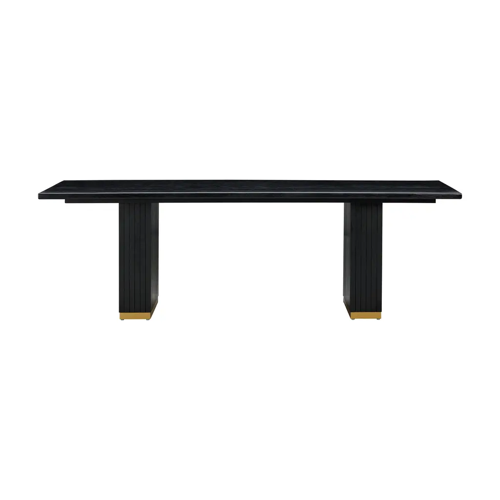 Durable and dreamy, the Chelsea dining table is a classic in every way. Its natural or black oak wood finish elicits vacation vibes while the brass base gives it that modest glow-up. Available in rectangle or round.