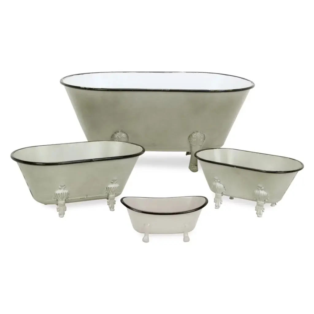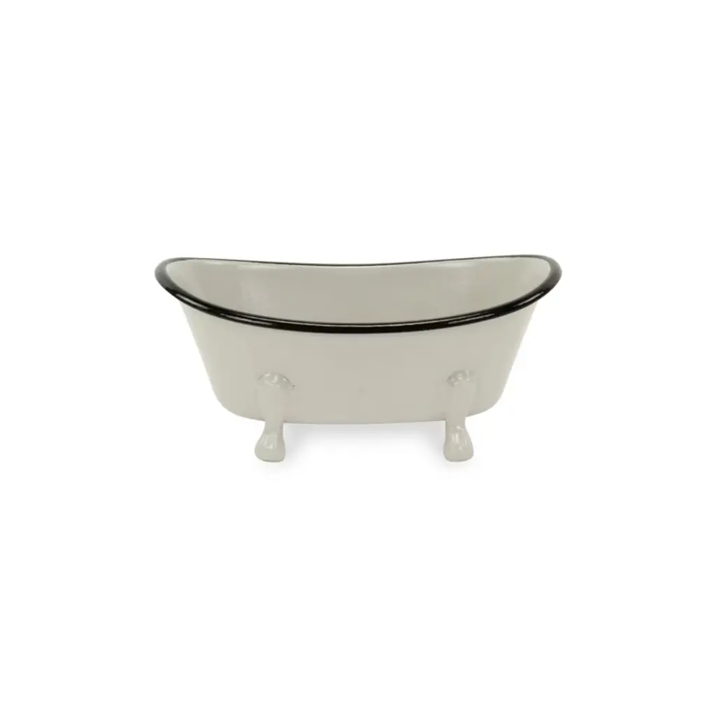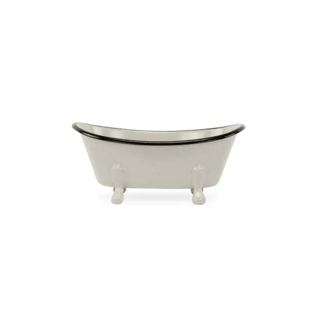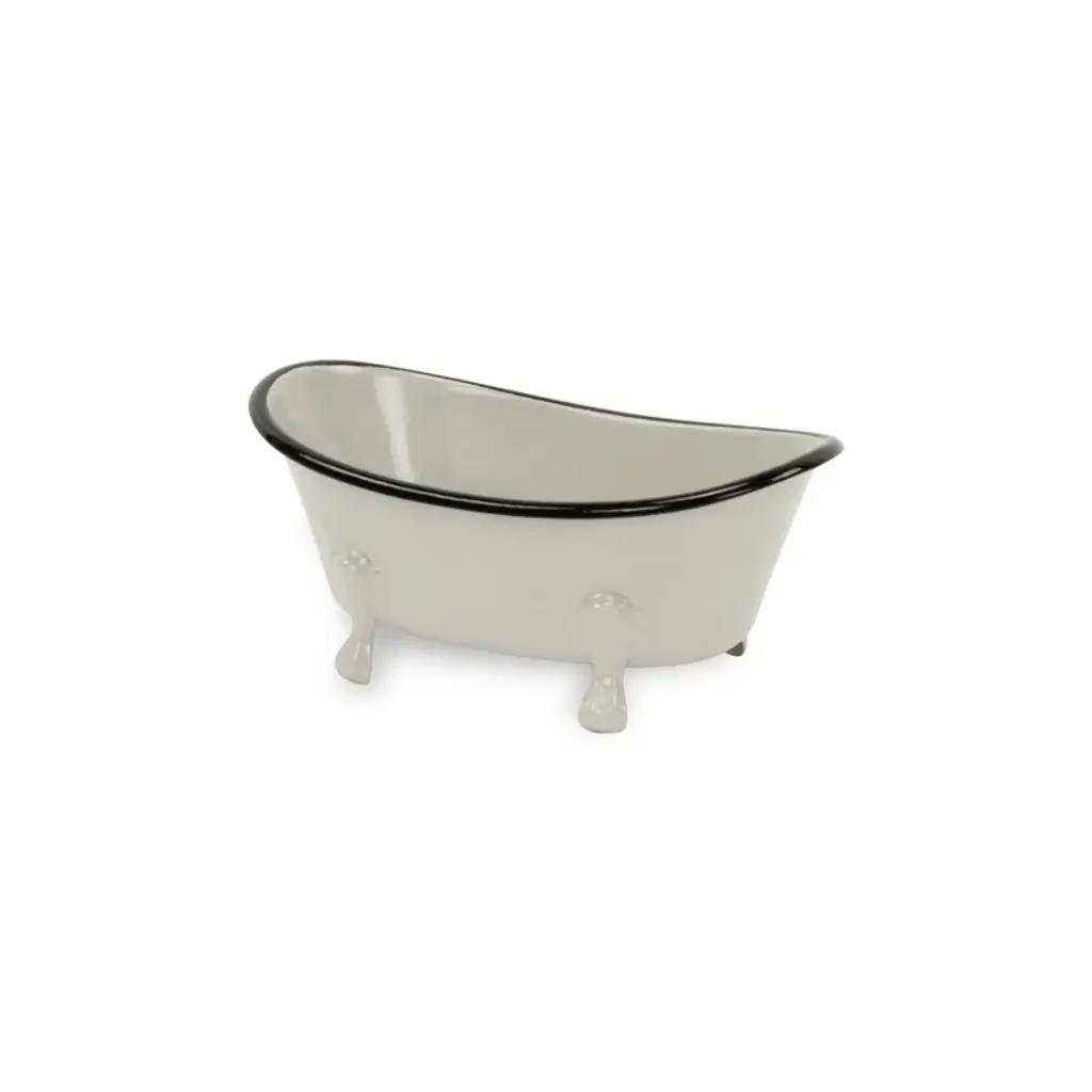 Accent your home and space with a wonderful stylish accent piece. From shelves to dining tables, entryways to bedrooms, smaller decor pieces have found their way into spaces that need a finishing touch of flair or design. This piece features an elegant, traditional bathtub style in a gray finish and a curved black, top rim. With its bathroom themed construction this piece will be a special addition to your home or space.