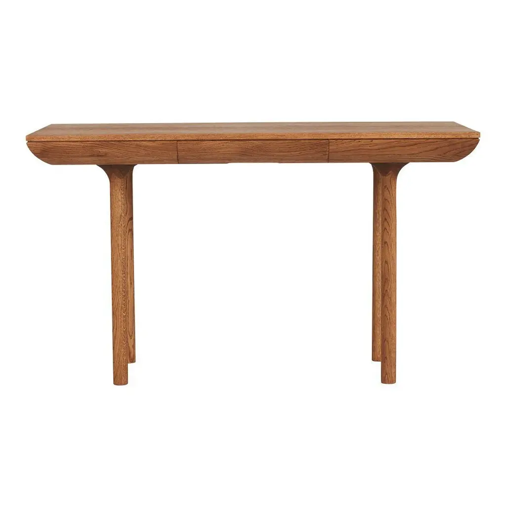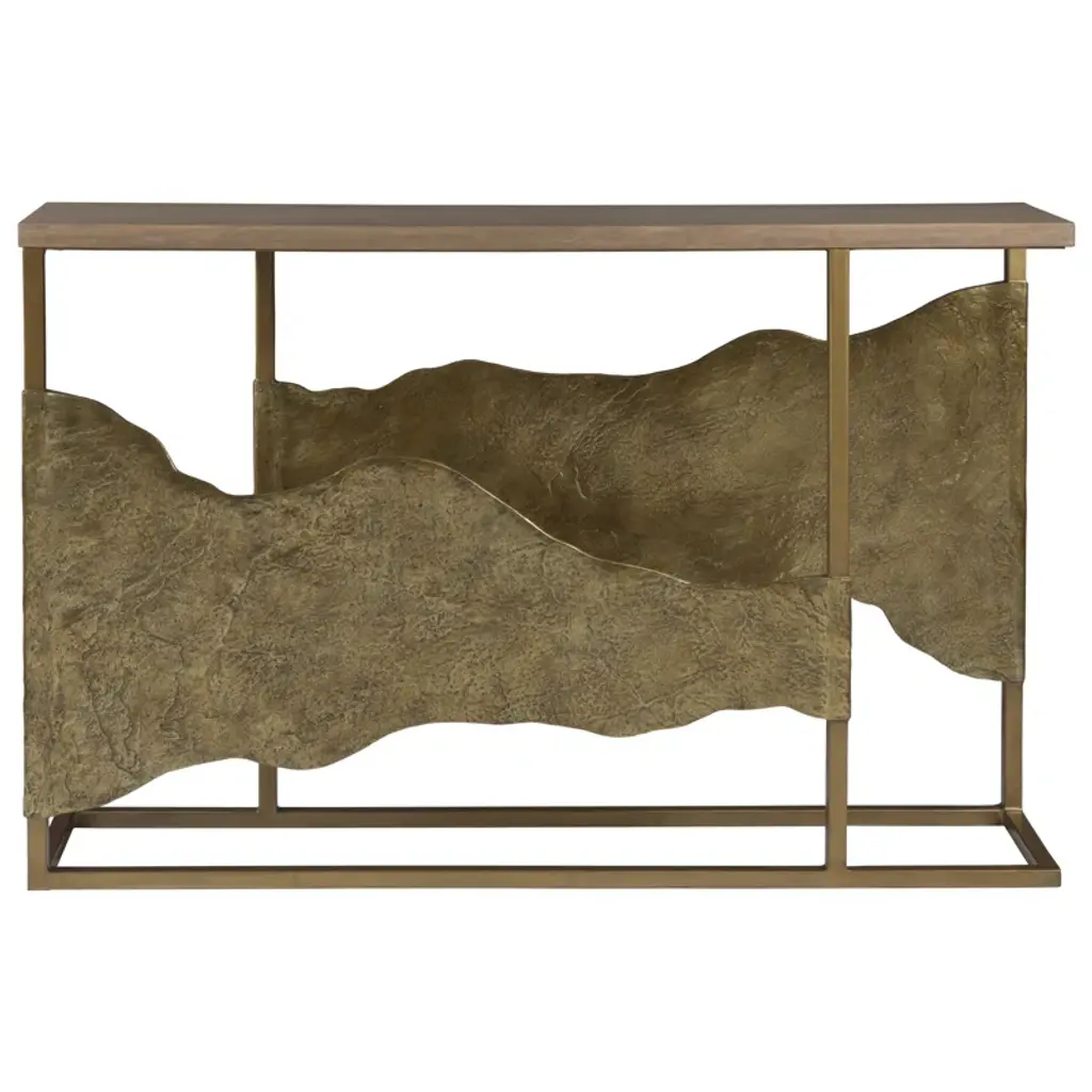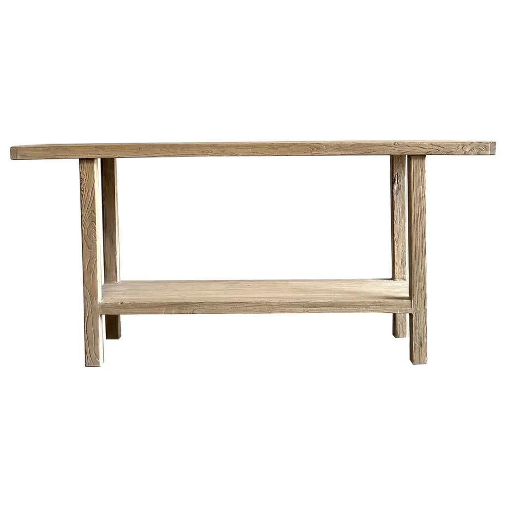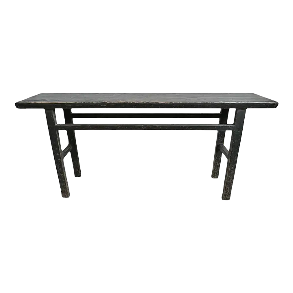 Console reflects timeless Eastern design, blending graceful proportions with artisanal detailing. Finished in a warm Husk tone, this piece captures the elegance of Ming-inspired furniture with its long rectangular form and decorative carved aprons on both the front and back. Perfect for entryways, dining rooms, or behind a sofa, the console table balances refined craftsmanship with versatile function. Its elongated surface offers generous space for display, while the carved apron adds depth and artistry. A fusion of historic influence and contemporary appeal, this piece makes a distinguished addition to any interior.Dimensions: 76" W x 15" D x 32" H