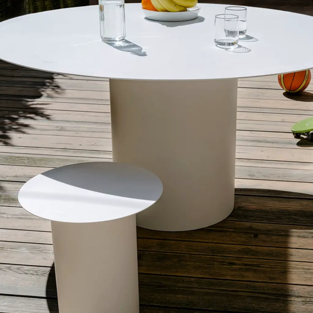 Crafted of hand-wrought iron with a simple round top and pedestal leg, this table of the Chiodo Collection sits six people comfortably and, if necessary, up to eight. Best paired with Chiodo 5 and Chiodo 4 stools, this table fits easily in both contemporary and industrial-style kitchens, dining rooms, and offices. The smooth white surface is spray-painted and also offered in galvanized powder-coated if destined for outdoor use on a patio, veranda, or garden. Available also in black, please contact the Concierge for details in all available options.