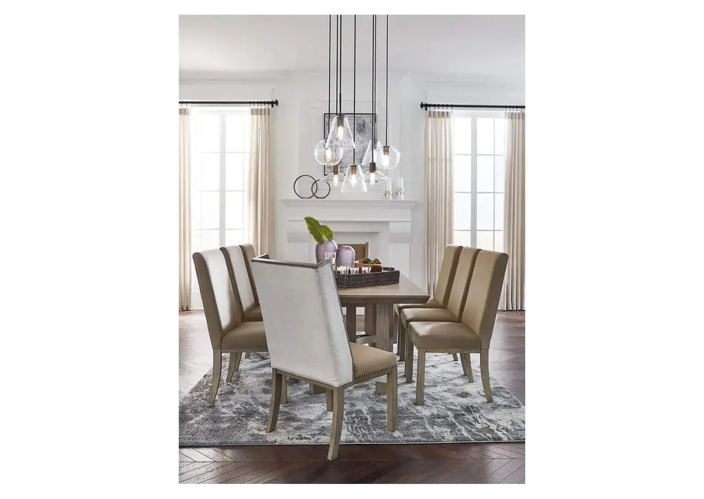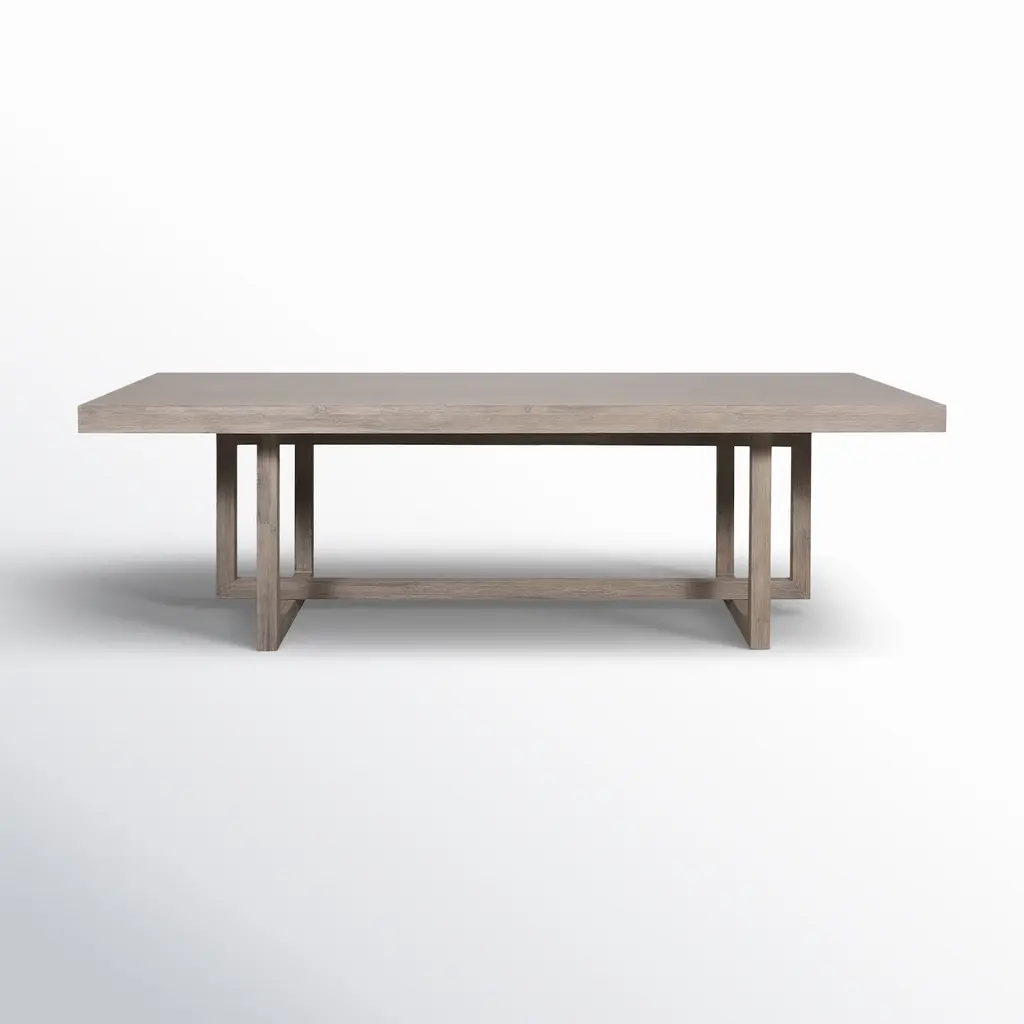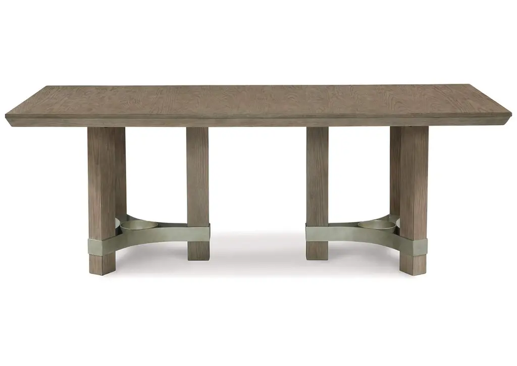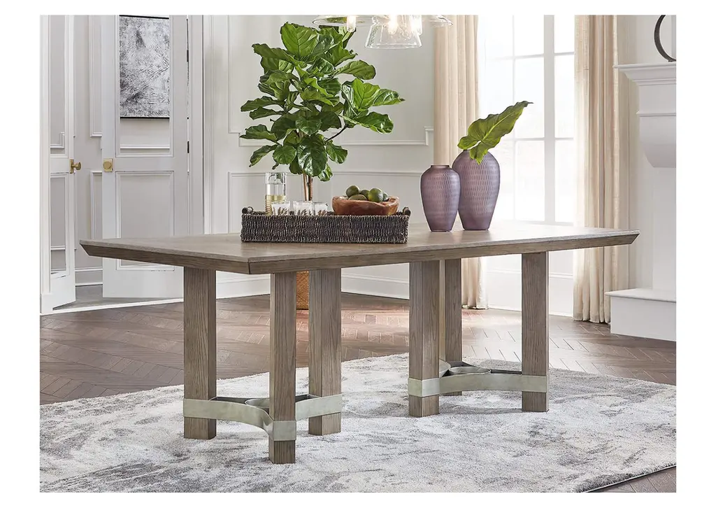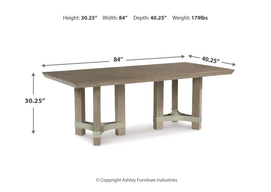 You want your dining room to reflect your refined sensibilities while remaining forward-thinking in design. The simple silhouette of the Chrestner dining table opens the door to a dining room with the curated look and subtle flair you desire. The piece's elegant waxy gray finish gets an added touch of luxury with a double-pedestal base and beveled-edge top, showing remarkable attention to detail. Whether you're hosting family meals or holiday entertaining, this table is a place to gather around in streamlined style. Weight 179.000 lbs. (80.55kgs.)