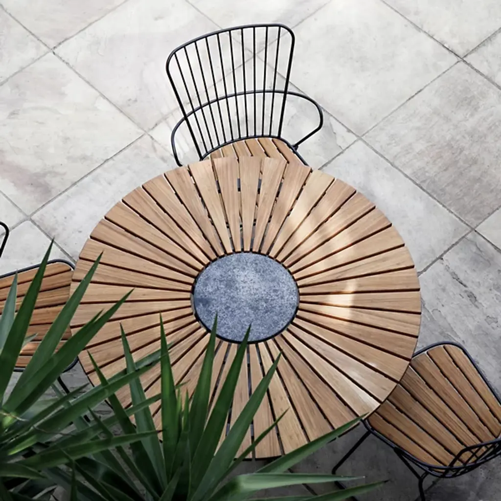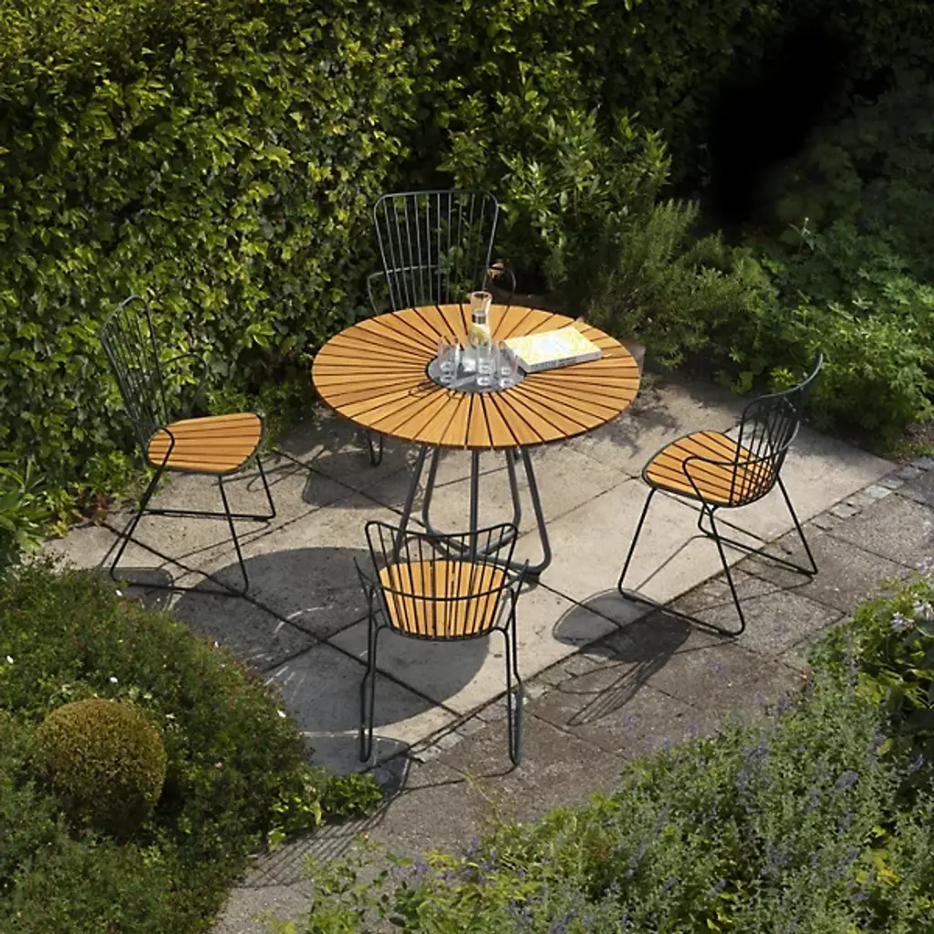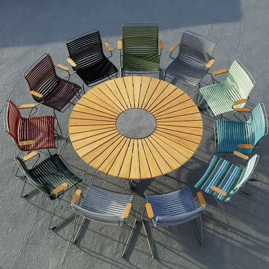 Presented by Houe, the Circle Dining Table is a contemporary luxury furnishing with Scandinavian-inspired touches throughout the composition. Designed by Henrik Pedersen, it features a pre-oiled bamboo lamellas table top with a granite stone accent at the center and grey powder-coated aluminum legs. Suitable for display among indoor and outdoor spaces, this is an attractive furnishing that will elevate the surroundings while offering you and your guests a lovely place to dine.