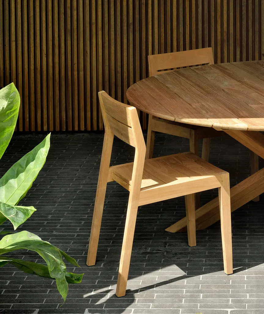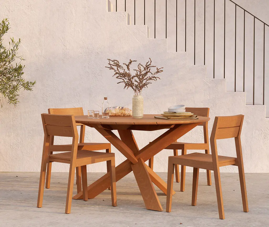 The Circle dining table is all about inspiring your loved ones to spend a little more time at the table. Its solid legs intertwine in perfect balance, while the adapted grooved design makes outdoor life a simple pleasure.