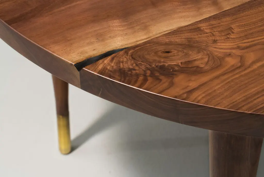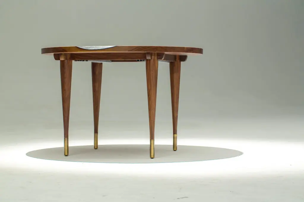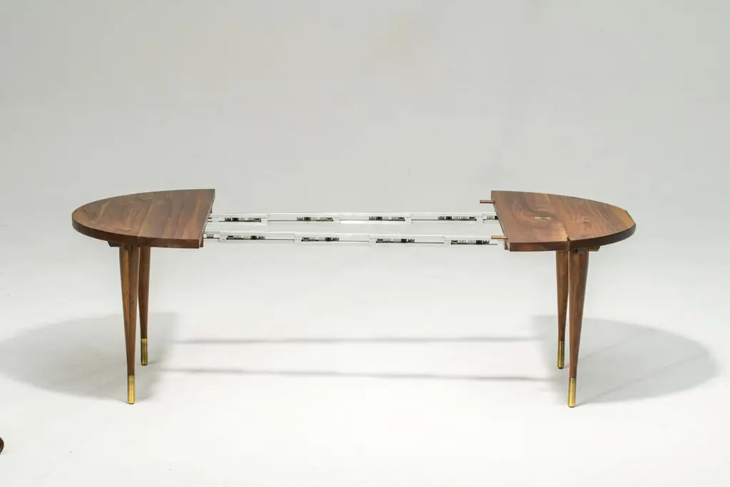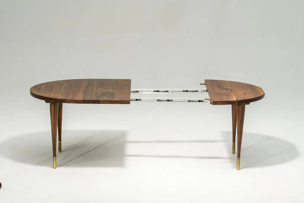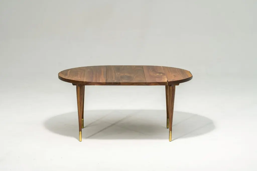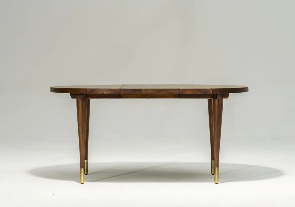Circle Walnut Expanding Dining Table W/ Brass Capped Legs "Warren Dining Table"