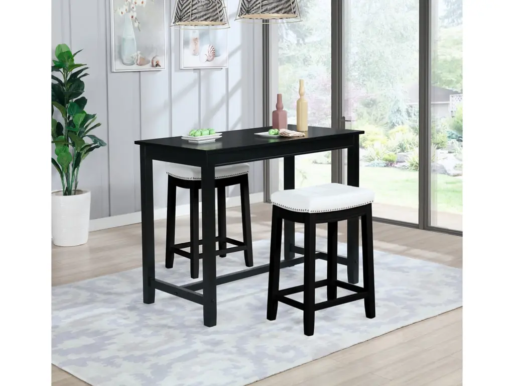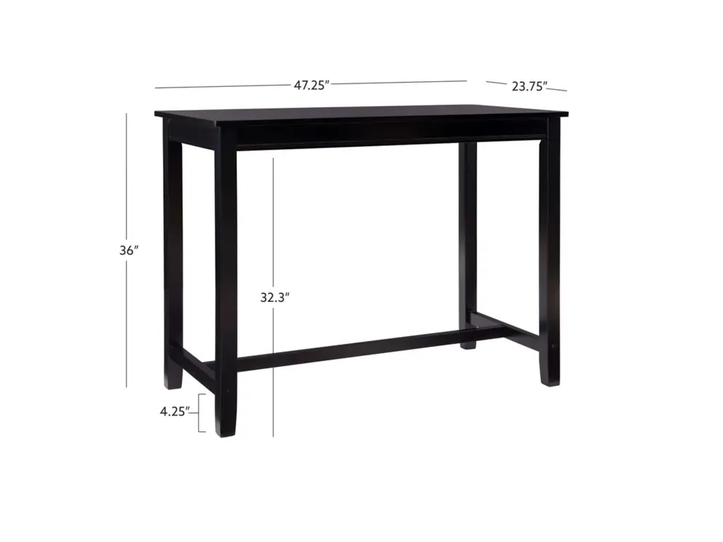Our most popular counter height stools now have a coordinating pub table. Perfect for providing a gathering, dining or desk space to your den or living areas. Top and solid wood base finished in black. Be sure to match with stools that have a seat height of 24 to 28" to provide enough leg room. Flexible and durable enough to be used in the dining room, living room or as extra kitchen counter space. Pair with the claridge black, white or grey counter stool for the perfect set.