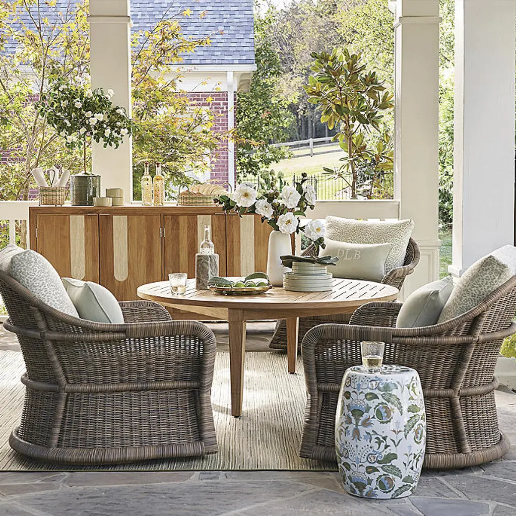 Our Classic Teak Tea Table pairs perfectly with lounge chairs to create a casual dining experience. Crafted of sustainable teak, the hardwood is kiln dried to eliminate expansion and shrinkage, then sanded to a smooth finish. Stainless steel hardware is fully concealed, so nothing interrupts the clean lines. Hand-built from sustainably harvested premium teak that is naturally resistant to mildew, so it holds up to rain and humidity Durable teak frame is kiln dried to remove moisture, guarding against warping and cracking, and sanded by hand so it's smooth to the touch Teak naturally releases resinous oils as it weathers; using a rug is recommended to help prevent staining of deck or patio surfaces Over time, teak will develop a natural silver patina if left untreated Frame is backed by an industry-leading 10-year structural warranty Finely sanded to a smooth, natural finish Slatted top creates a sunburst pattern Fully concealed stainless steel hardware Assembly required A Frontgate exclusive. At Frontgate, our primary focus is quality. We guarantee that every product we sell will stand up to the supreme test – our customers' satisfaction. To learn more about our policies, visit our Shipping & Processing, Returns & Exchanges and Warranty & Price Guarantee pages. Our Classic Teak Tea Table pairs perfectly with lounge chairs to create a casual dining experience. Crafted of sustainable teak, the hardwood is kiln dried to eliminate expansion and shrinkage, then sanded to a smooth finish. Stainless steel hardware is fully concealed, so nothing interrupts the clean lines. Hand-built from sustainably harvested premium teak that is naturally resistant to mildew, so it holds up to rain and humidity Durable teak frame is kiln dried to remove moisture, guarding against warping and cracking, and sanded by hand so it's smooth to the touch Teak naturally releases resinous oils as it weathers; using a rug is recommended to help prevent staining of deck or patio surfaces Over time, teak will develop a natural silver patina if left untreated Frame is backed by an industry-leading 10-year structural warranty Finely sanded to a smooth, natural finish Slatted top creates a sunburst pattern Fully concealed stainless steel hardware Assembly required A Frontgate exclusive. At Frontgate, our primary focus is quality. We guarantee that every product we sell will stand up to the supreme test – our customers' satisfaction. To learn more about our policies, visit our Shipping & Processing, Returns & Exchanges and Warranty & Price Guarantee pages.