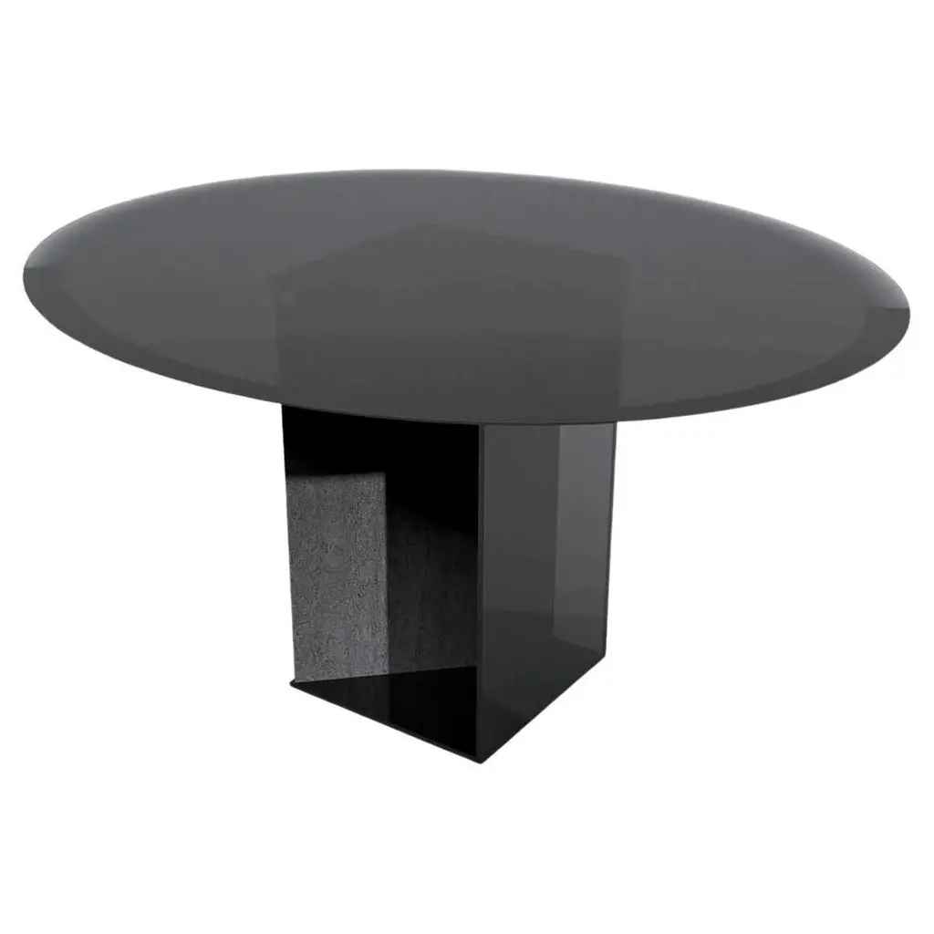 With the Pli table series French designer Victoria Wilmotte brings objects of unusual crystalline elegance and astonishing geometry to living environments, dining rooms or entrance areas. The bends and folds that gave Pli its name almost make the stainless steel base look like an oversized finely polished precious stone. The table’s oval forms of the base and tabletop establish an attractive contrast with the facets of the base, which create a fascinating play with light friction and color reflections in the room. The Pli Table can be used as a representative dining table for up to eight persons. In the entrée or foyer, galleries and stores the table can also be used as a spectacular eye-catcher.Materials: Base made of folded, high-gloss polished stainless steel sheet, tinted with a special method. Oval tabletop made of crystal glass, fully color-lacquered, glossy. Height-adjustable felt gliders in black.Dimensions: W 180X140cm, H 74 cm.