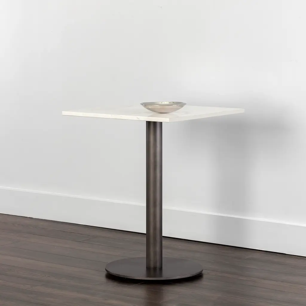 The Claudia Bistro Table from Sunpan brings elegance and sophistication to any dining space. With an Art Deco inspired design, the white marble top and pewter finished steel base exude luxury. The natural variations in the marble add to the uniqueness and beauty of this premium piece. Perfect for restaurants and smaller spaces. Highlights
