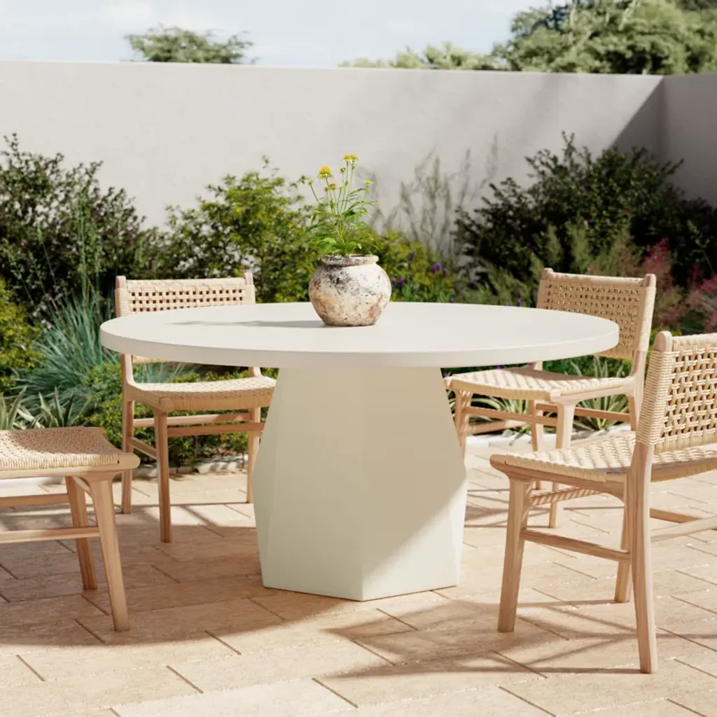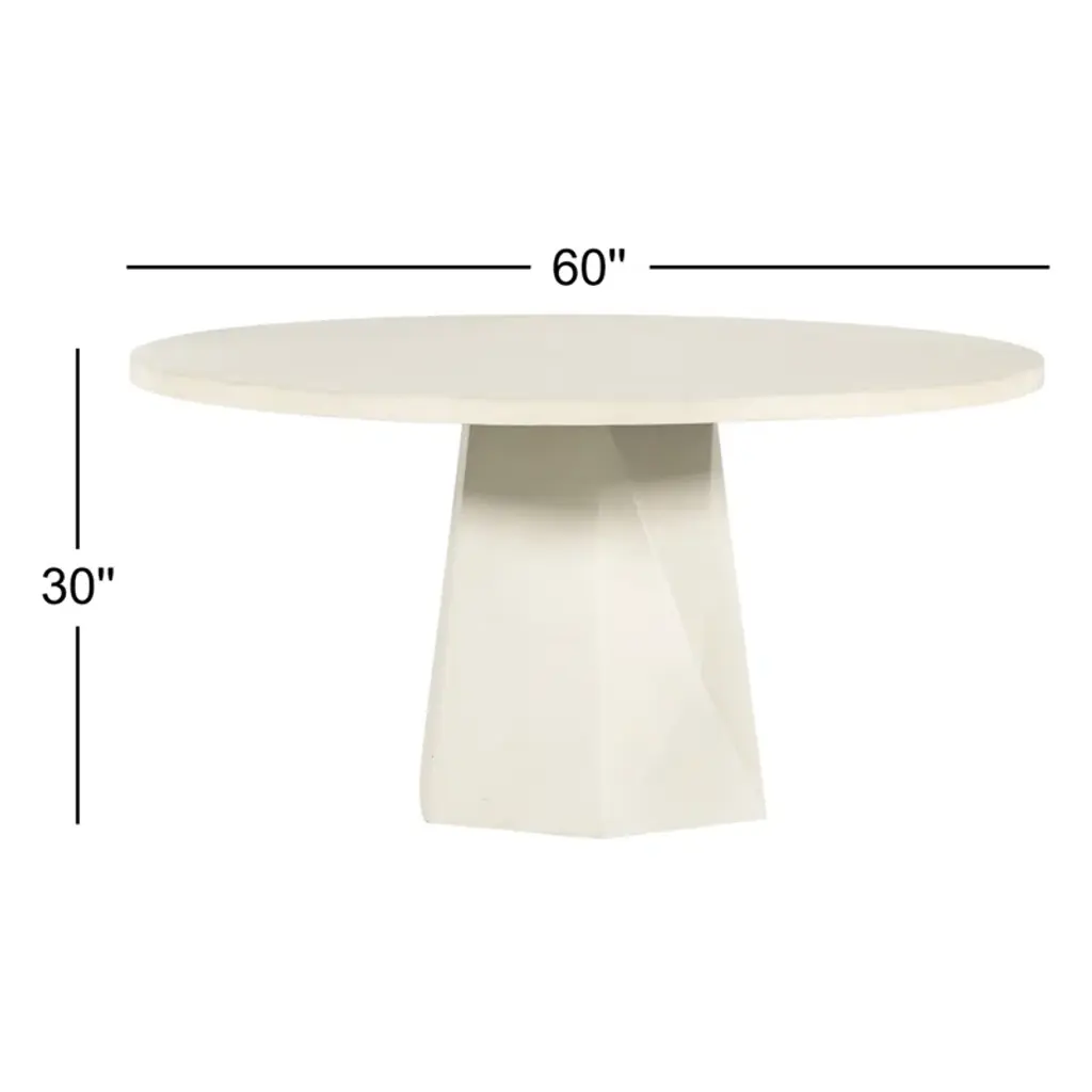 White-finished concrete forms a faceted base for impact from every angle. A roomy, rounded top is ready to welcome guests indoors or out. Cover or store inside during inclement weather and when not in use.