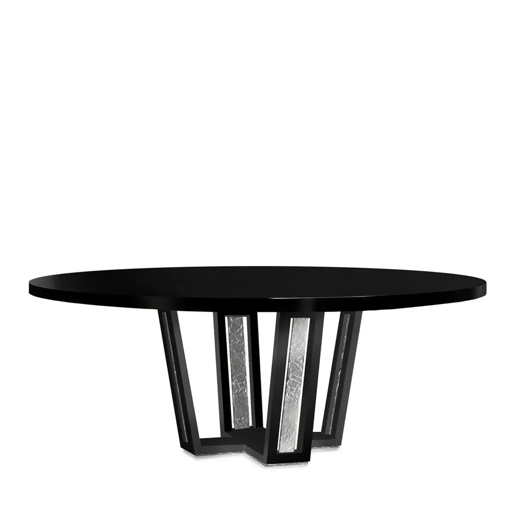 "Stunning modern design meets expert Italian craftsmanship for this luxurious oval dining table with fixed tabletop. The design is notable for its superior quality, and the intense effect of the hand-applied crinkled leaf offers a subtly glamorous appeal. The table is available in a matt black lacquered finish." Signed by Maker,Signed by Maker