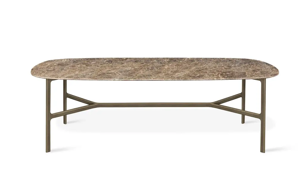 "The Coast Table draws on the same refined joinery as the Coast Chair. With a silhouette that is both architectural and organic, the tables refined brass frame and sculptural joinery support a tabletop that has had all sharp corners softened. The result is an elegant, inviting surface that provides the perfect landing spot for parties both large and small.” Branch Creative Coast Table is completed with the homonymous Coast Chair project presented in 2018, which found inspiration in the northern California coast, whose design was influenced by a landscape of golden and wandering hills and by the winding streets that intersect them.Coast Table is defined by the contrast between the lines and the thicknesses reduced to a minimum and the solidity of the structure, a table that adapts to any situation and that can be customized on any size.Structure: Die casted brass on the angular elements and tubular aluminium for the supporting structure.Top Finishes: 20mm marble, 30mm wood.Additional Information:Material: Brass and emperador dark marbleFinish: Brown burnished brassDimensions: W 280 x D 115 x H 76 cmAvailable in other top options: Calacatta gold marble, sahara noir marble , carrara white, eramosa brown marble, woodAvailable in other size options: 105 x 200 x 76 h, 110 x 240 x 76 h and 120 x 300 x 76 h cmAvailable in other finish options: Polished brass, satin brass, light burnished brass, dark burnished brass, black gold