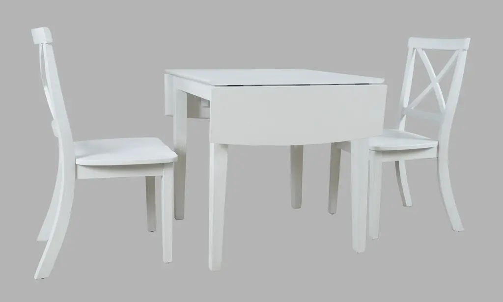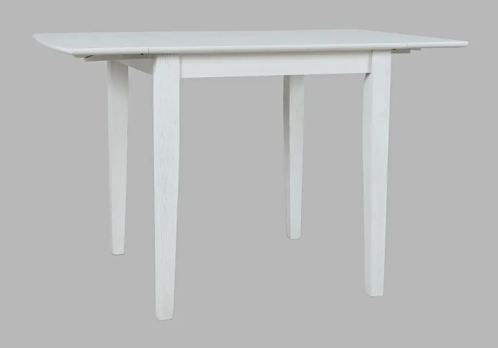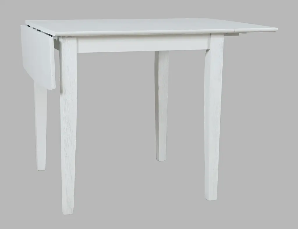 With coastal ambience and casual charm, this collection's inviting design is an ideal add for a cozy eat-in kitchen or family dining room. Each piece is carefully wired-brushed for a worn, comfortable look. Drop leaf tables available in bisque or blanc finish; extension table available in bisque only.