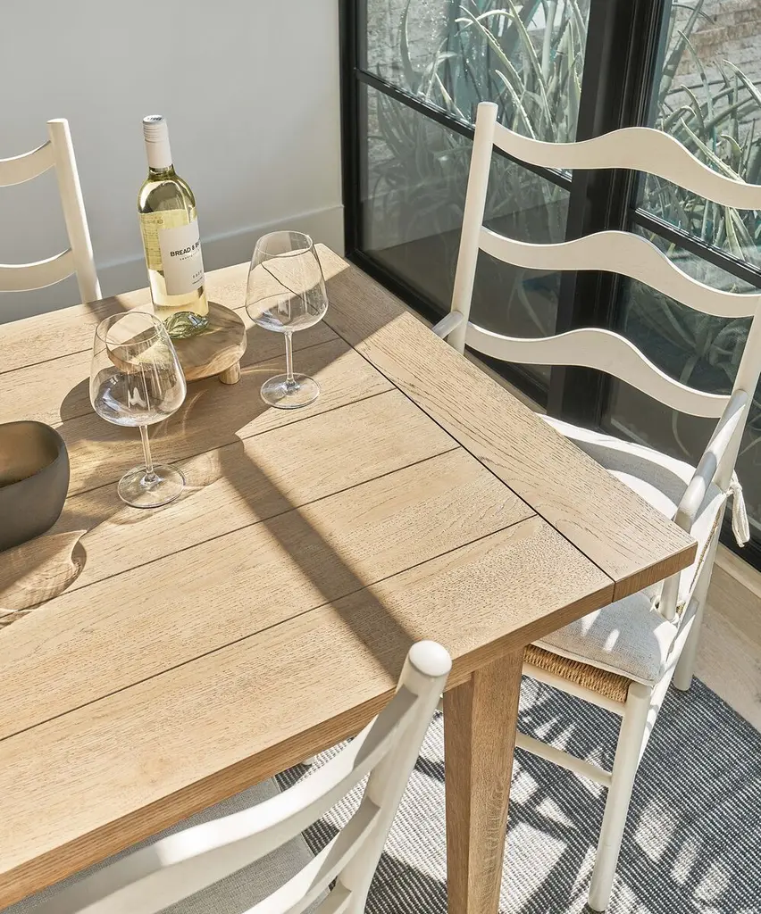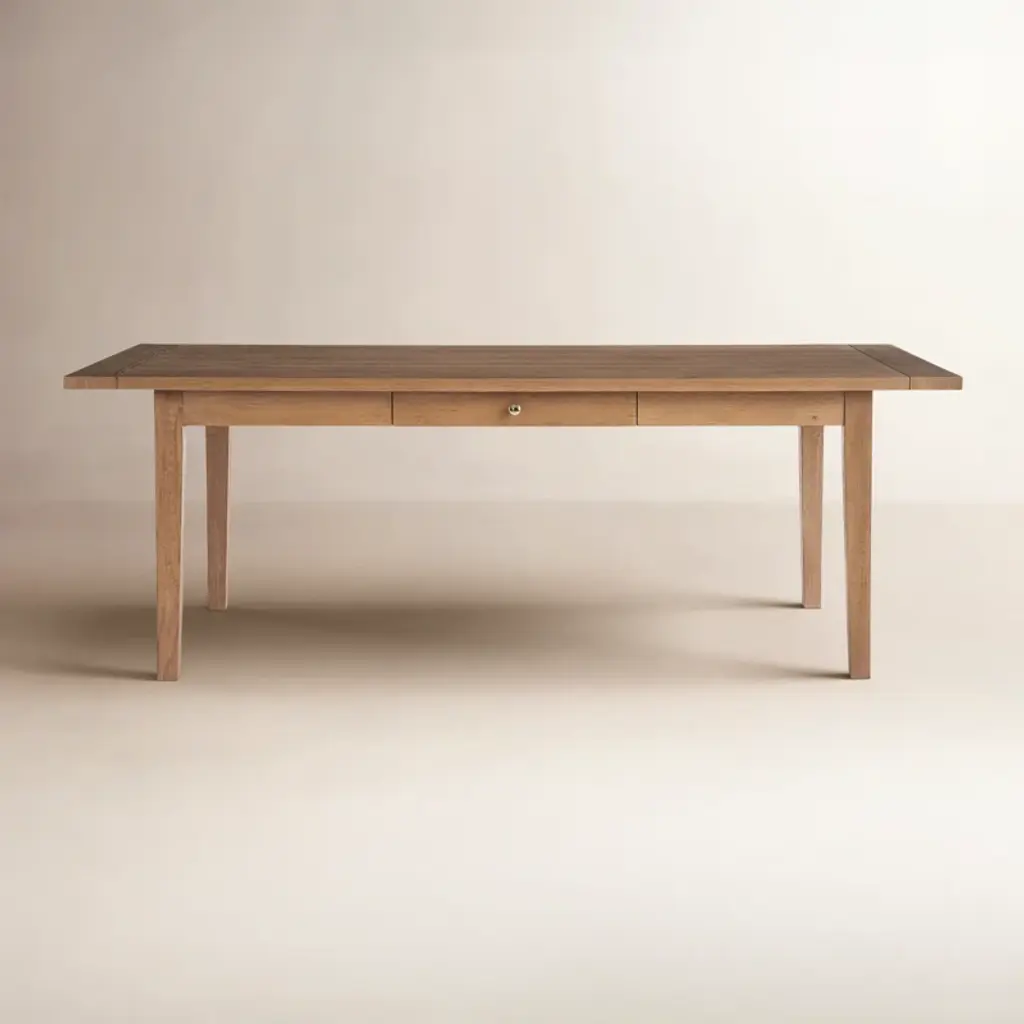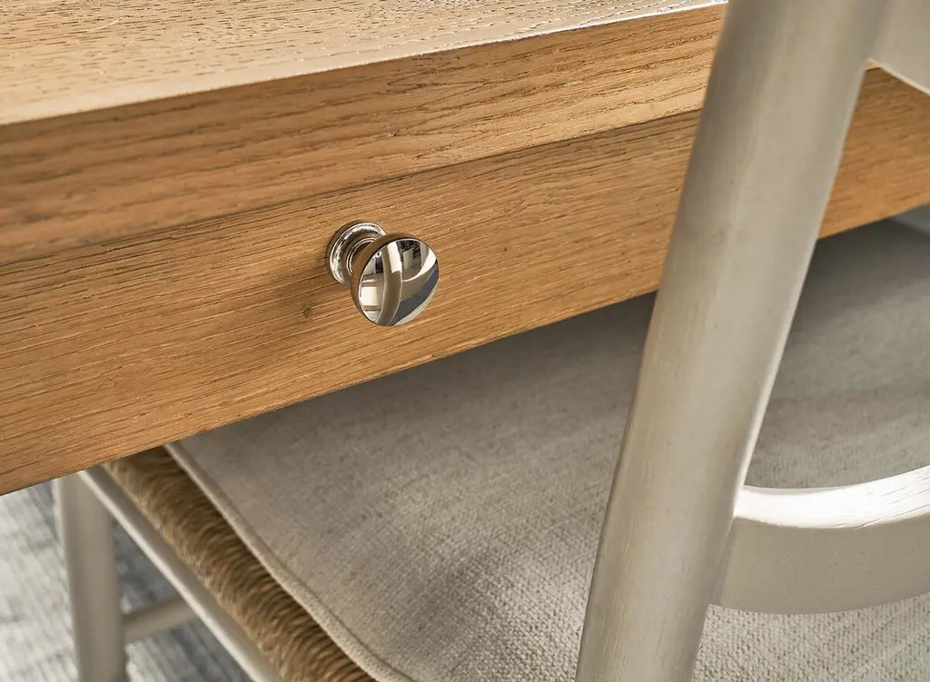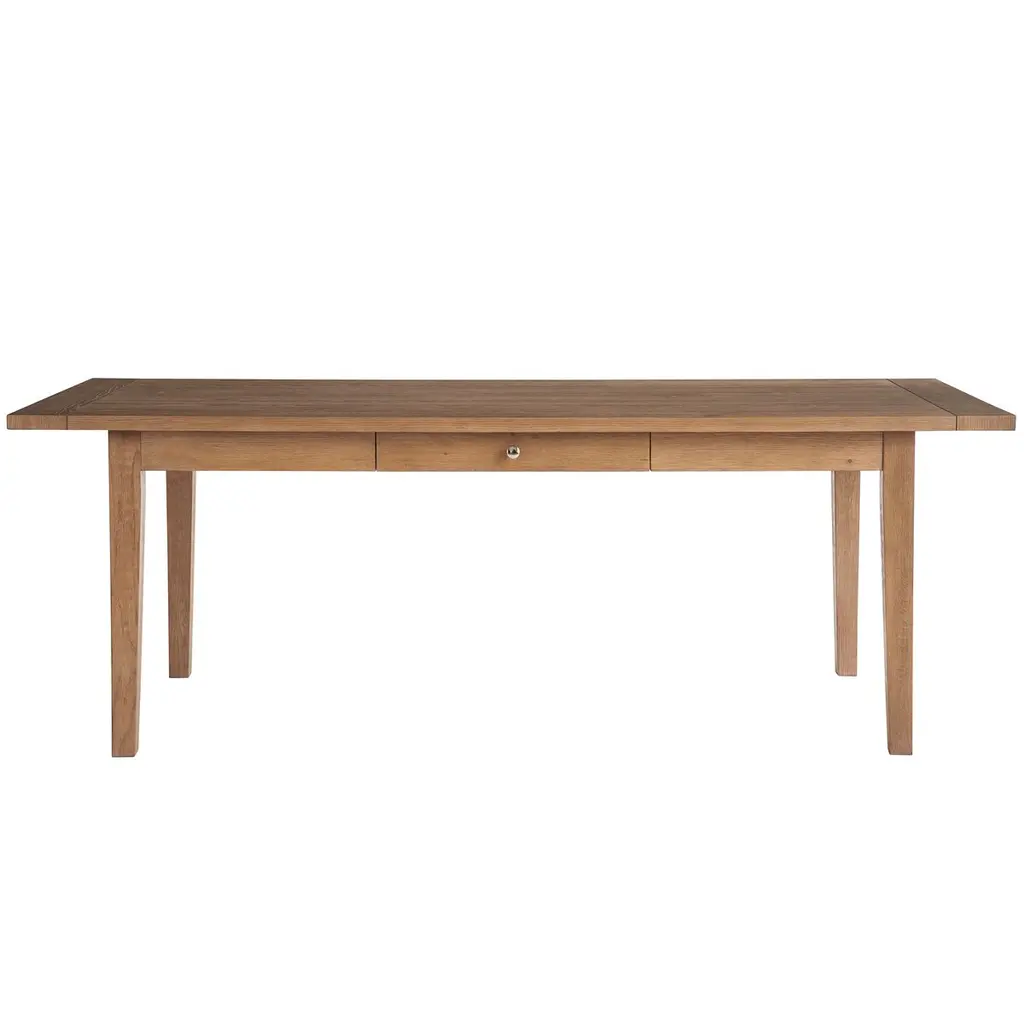 Embrace mid-century modern elegance with the Coastal Living Dining Table. Its sophisticated knotty oak finish radiates warmth and natural beauty, complemented by clean lines and subtle details reminiscent of iconic mid-century style. This functional piece includes a spacious drawer with removable gray felt bottom for convenient storage of dining essentials. Sturdy metal side mount guides and plastic glides ensure stability and easy movement without floor damage. Whether for formal dinners or casual family meals, this dining table sets the stage for cherished memories in your dining space.