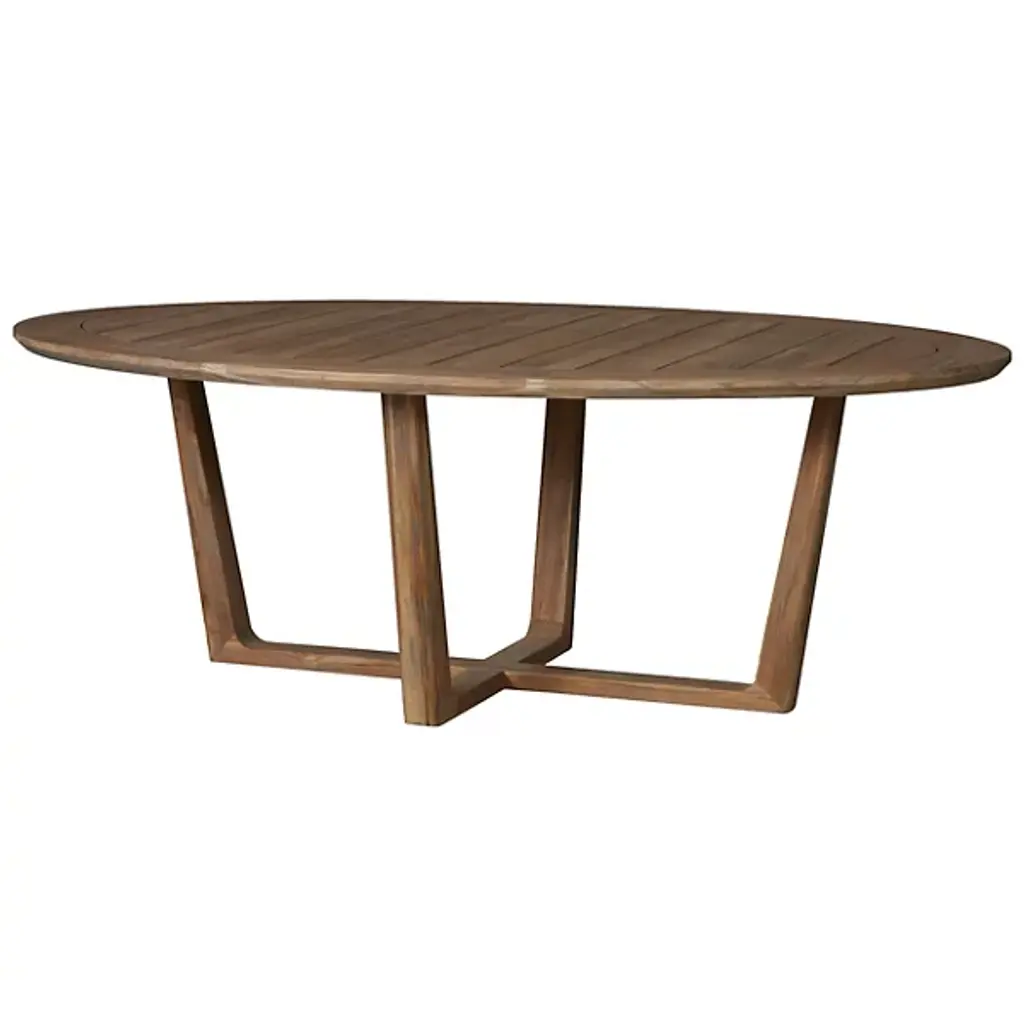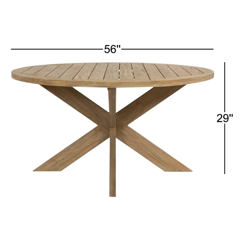 Say hello to alfresco dining with this stunning patio table. Crafted from 100% solid teak wood, it showcases a contemporary X-leg design, and features rounded edges for a soft finish. The unique multi-step finish gives the wood a warm gray hue, making it the perfect piece for your outdoor coastal design. Plus, teak is known for its natural resistance to moisture, ensuring your table will remain a standout piece for years to come.