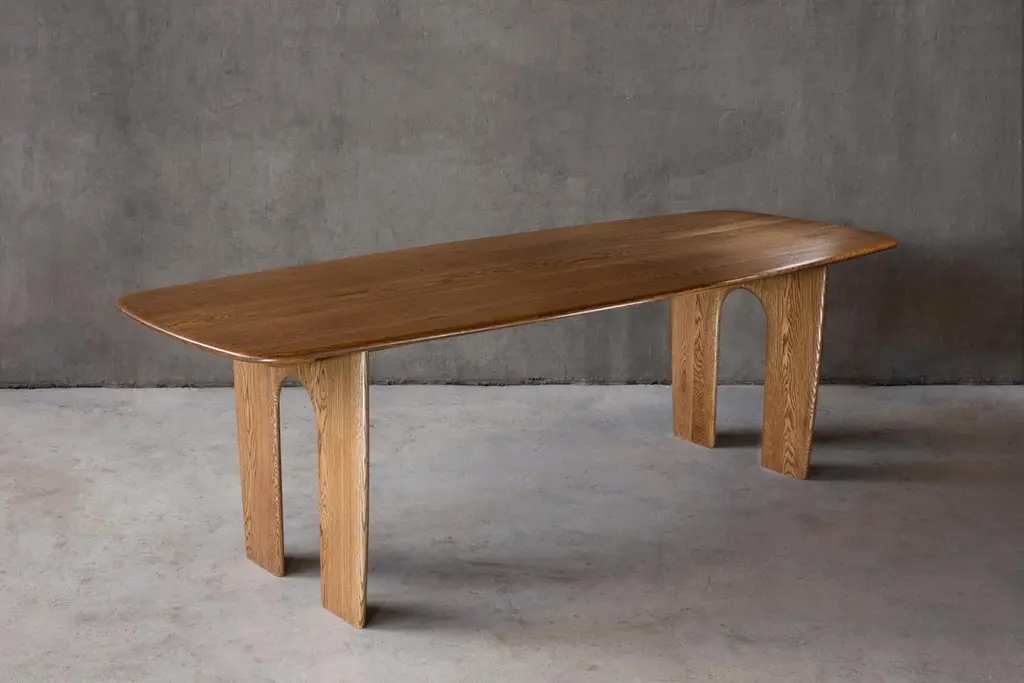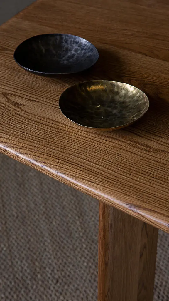 Inspired by the fishing boats traditionally used on the North East English coast. A made-to-order dining table designed by Lind + Almond and handcrafted in the UK.Constructed from the finest American oak with pronounced grain and hand polished to a subtle lustre. Sapele timber is also available. Measures: 300cm L x 120cm W x 75cm H to sit 10 people.Can be commissioned in bespoke sizes and finishes. See below for size and finish options.Made to order in 11-12 weeks.———Finish Options:Natural OakMedium OakWalnut———Size Options:4-6 Seater — 2000L x 950W x 750H6-8 Seater — 2400L x 950W x 750H8-10 Seater — 2800L x 1100W x 750H10 Seater — 3000L x 1200W x 750HCan be commissioned in bespoke sizes and finishes on request.———This listing is for the solid version of our Coble table. Also available in a veneer wood version. Please see our other listings.