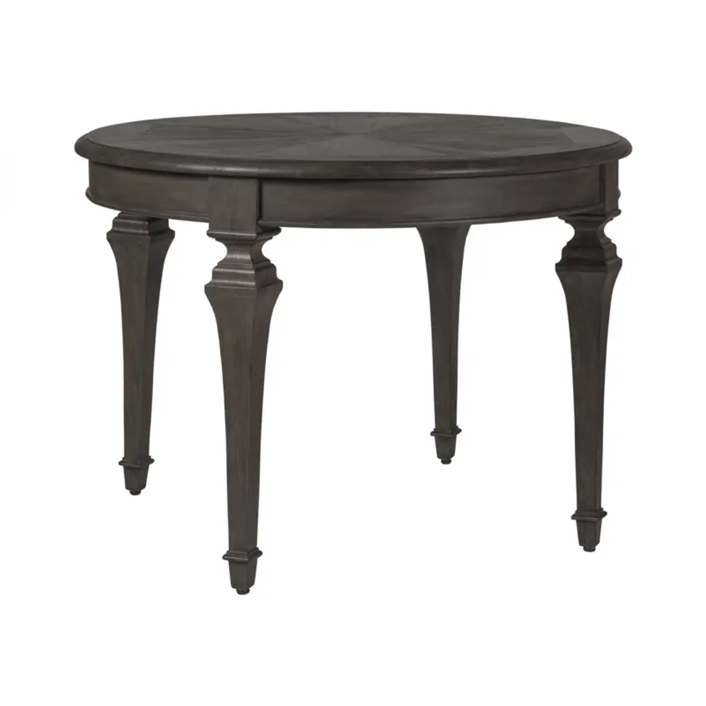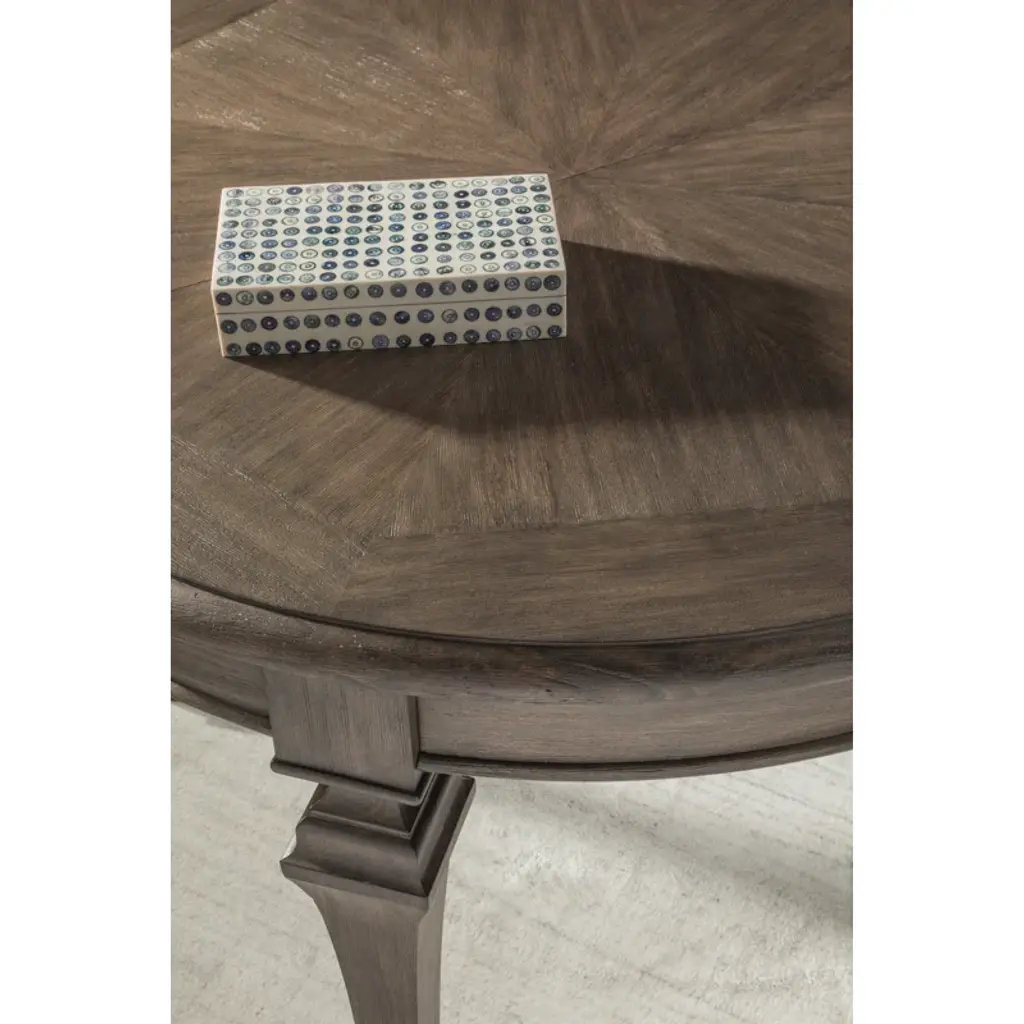 Updated traditional design crafted from mahogany veneers, bleached mahogany, and select hardwoods available in the Cohesion finishes. Features include a radial veneer match top with a straight grain border and tapered legs.