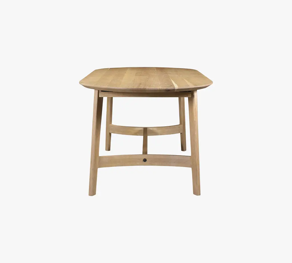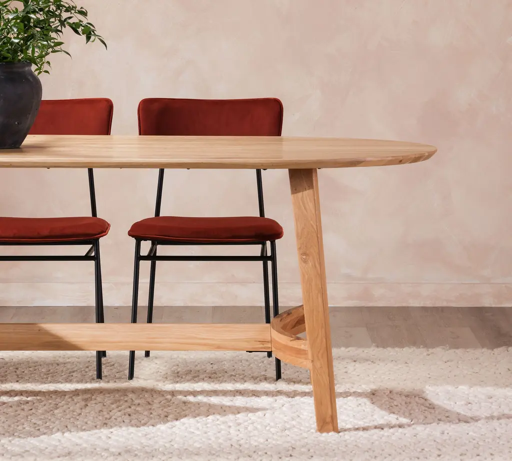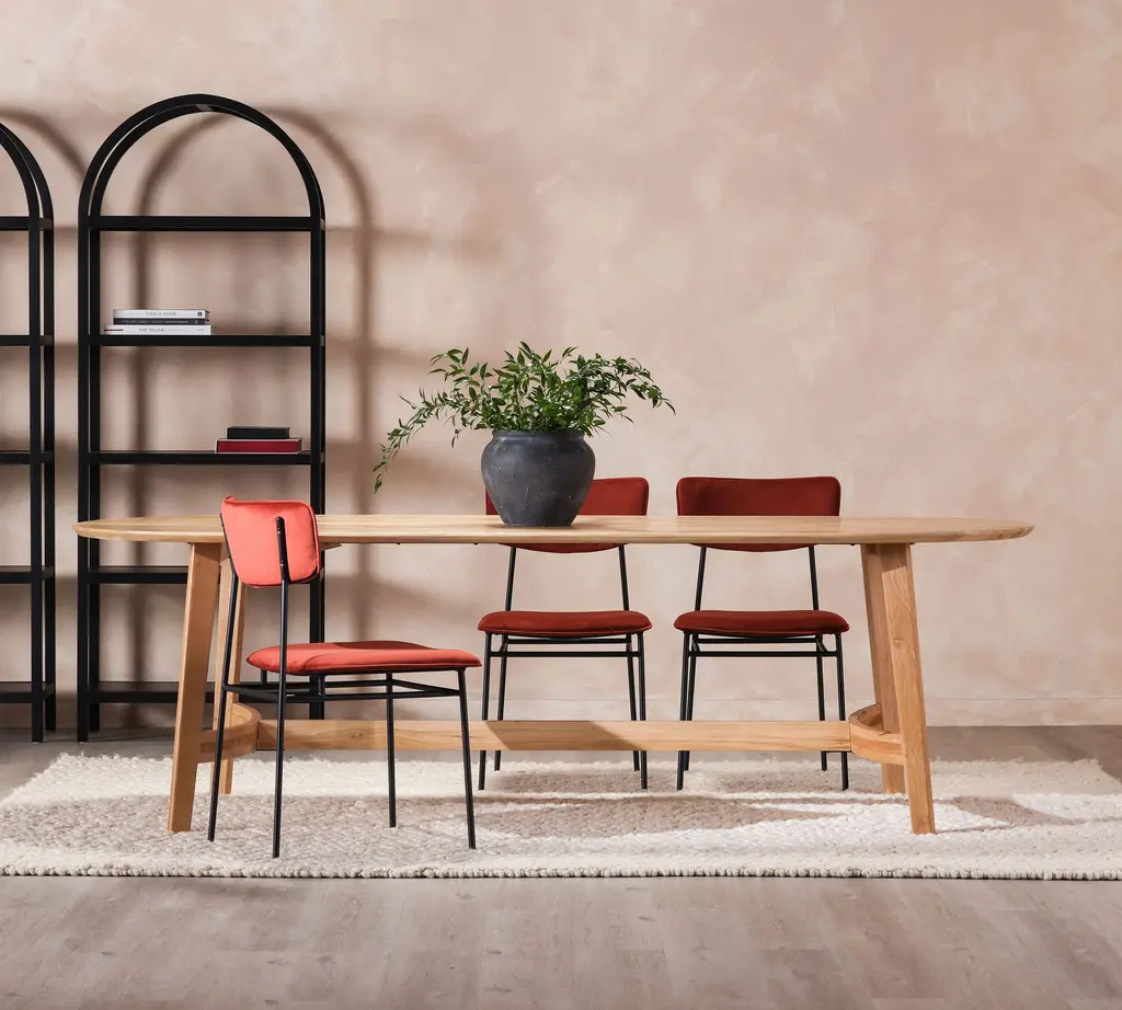 Minimalist curves have a way of balancing out a room. The streamlined silhouette is crafted of solid oak, which adds an enduring warmth to gatherings. Host up to 6 guests comfortably with this study in natural beauty.