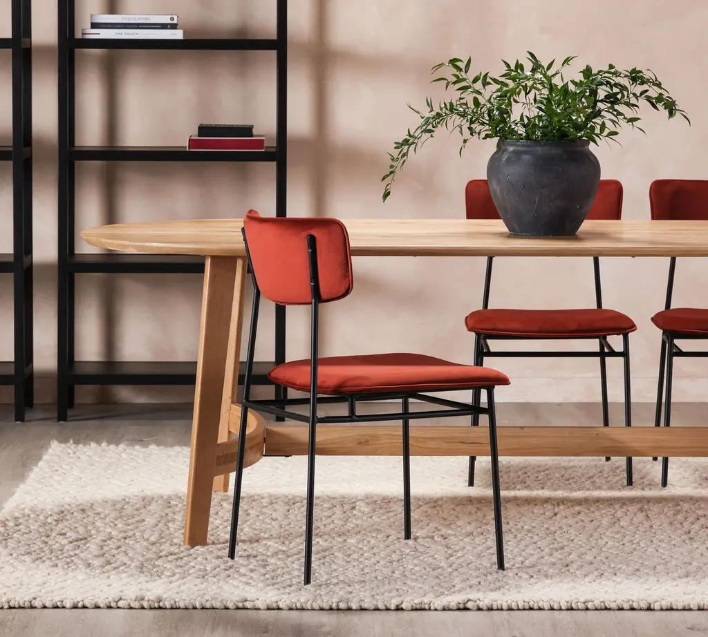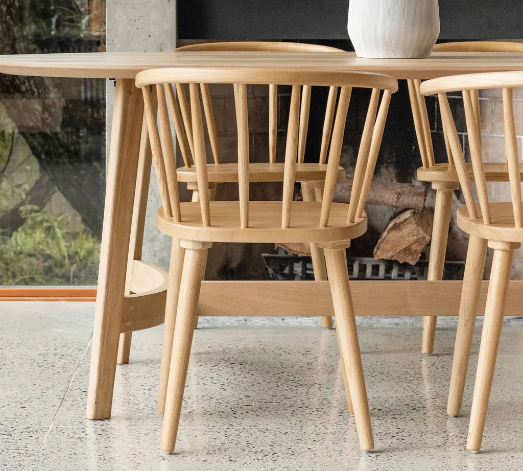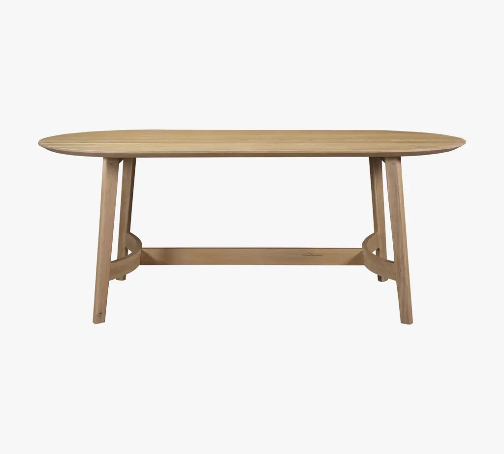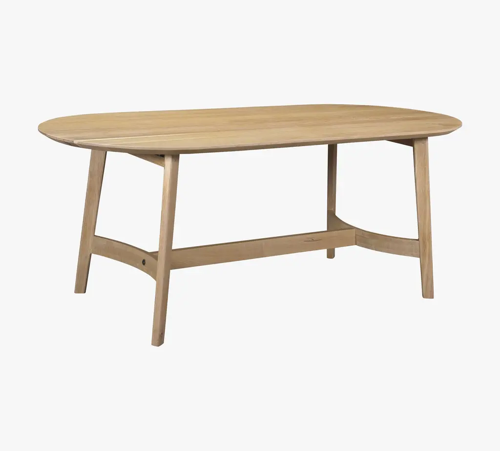 Minimalist curves have a way of balancing out a room. The streamlined silhouette is crafted of solid oak, which adds an enduring warmth to gatherings. Host up to 6 guests comfortably with this study in natural beauty.