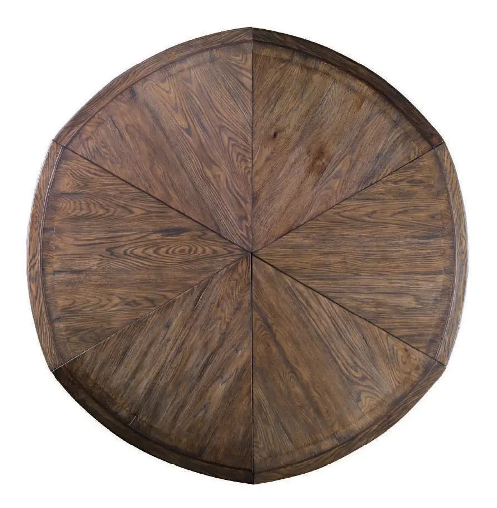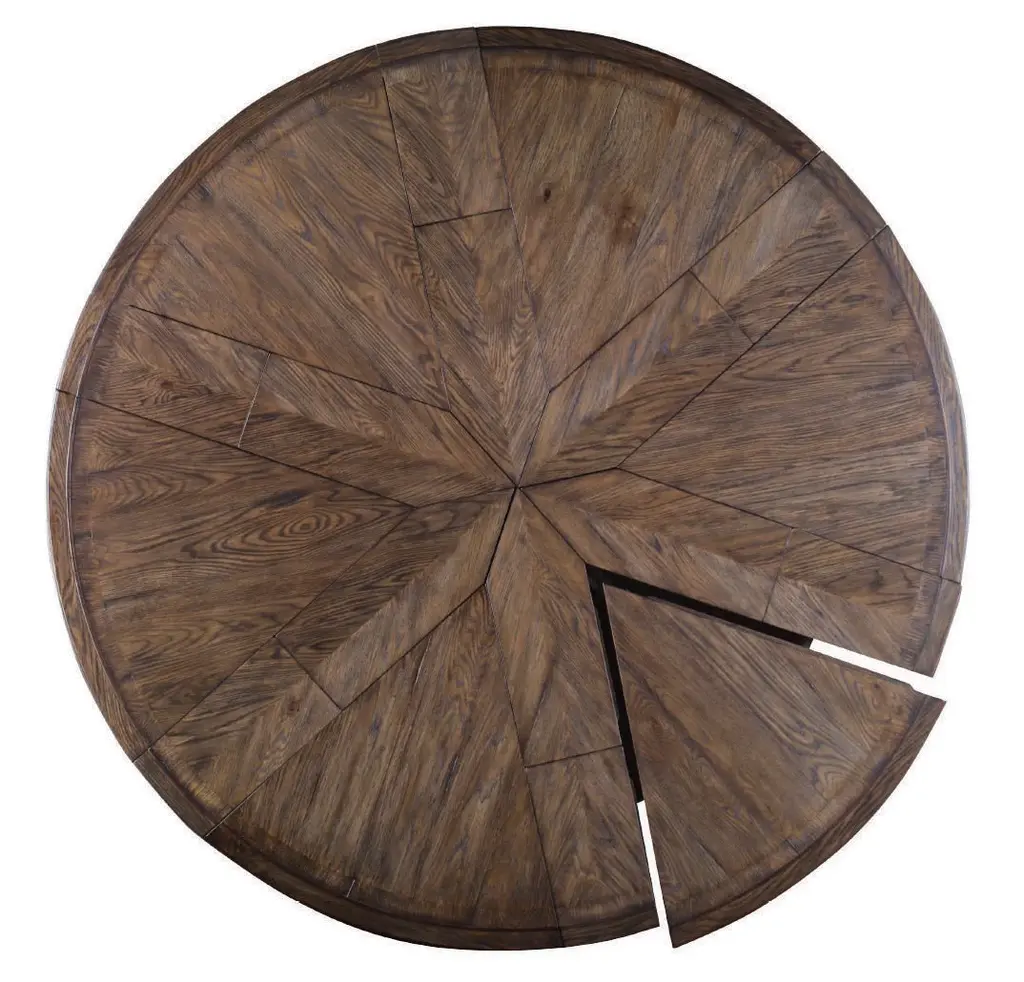 The Collin Dining table is designed to easily expand from a 60” top to 74” top. By pulling outward on the six pies, the Collin opens to reveal self storing leaves that butterfly out and slide into place. With its dark brown finish on oak and poplar solids with Oak and Okoume veneers, Collin is perfect for a casual dining room or breakfast room. Assembly Required? No Care Instructions: Dust with a soft, clean cloth slightly moistened with water, and dry completely with another clean cloth, always rubbing with the grain.