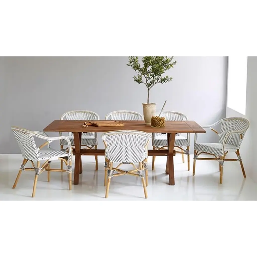 The Table is made of recycled teak from old fishing boats and houses. Both rustic and refined, this beautiful piece features a cross base and is built to last. Available in 2 sizes.