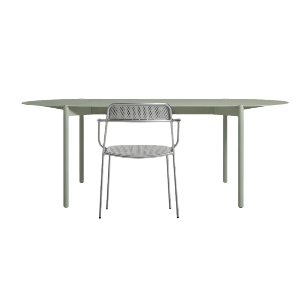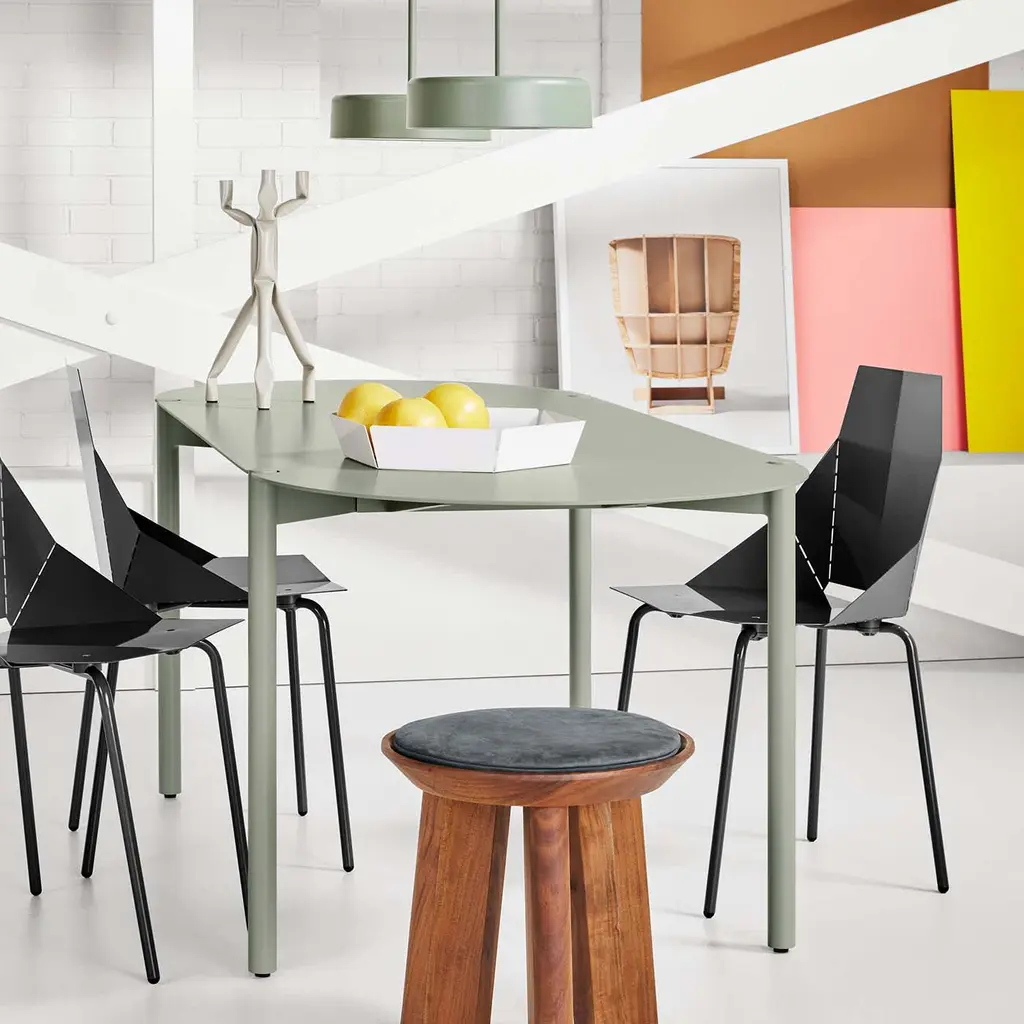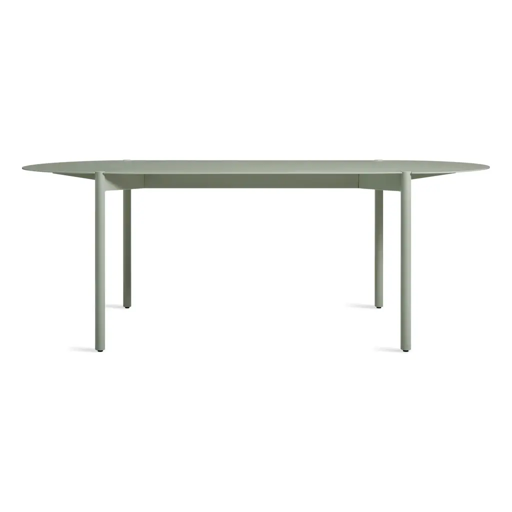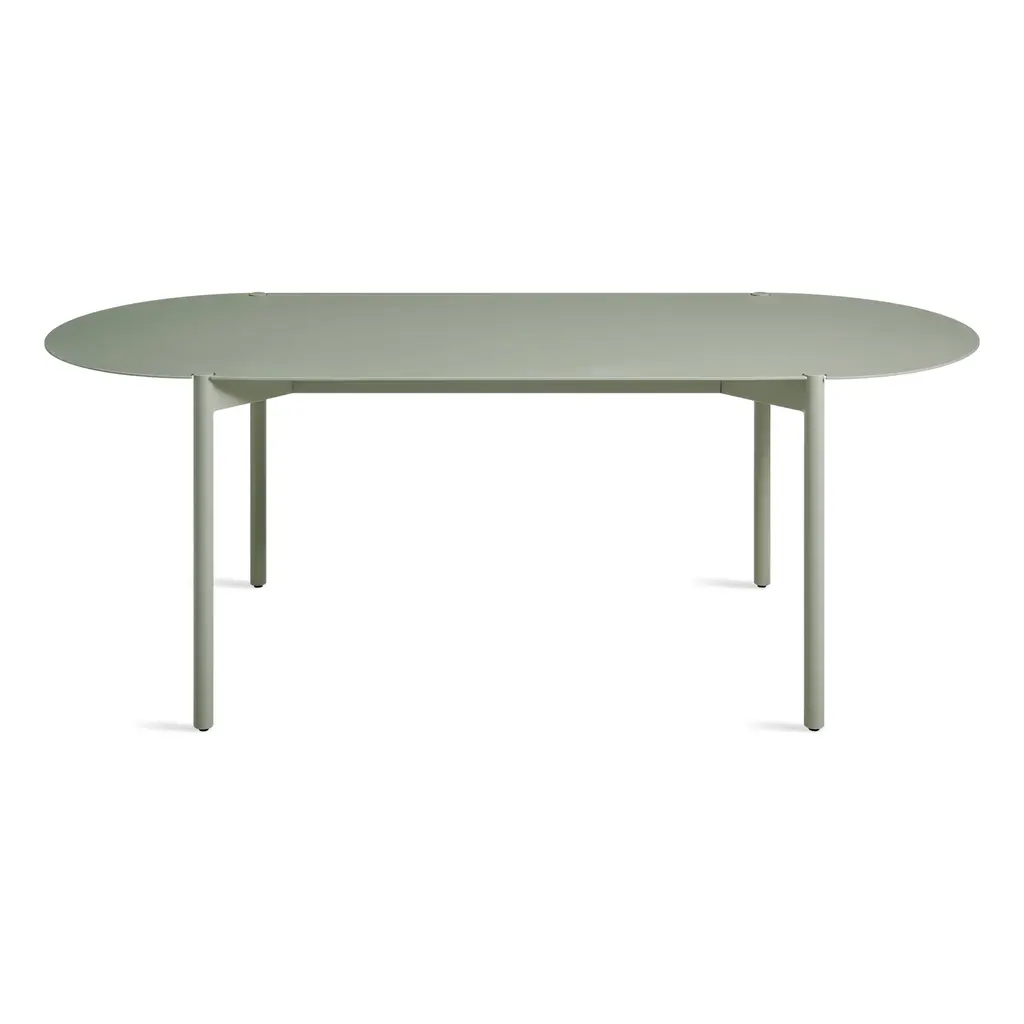 Enjoy a satisfying meal indoors or out, with the Comeuppance Capsule Shape Dining Table from Blu Dot. Crafted with powder-coated aluminum, this contemporary piece boasts clean lines and airy, slim legs. The generous curves of the capsule-shaped tabletop offer a chic contrast to its ultra-slim design, perfect for any dining space or covered patio. Highlights
