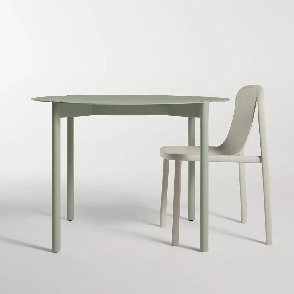 Anchor any dining area with the Comeuppance Round Dining Table from Blu Dot. With a sleek, thin design and surprising leg detail, this table is perfect for any occasion, indoors or out. Made with a powder-coated aluminum frame, it can withstand any elements or rowdy crowds. Highlights