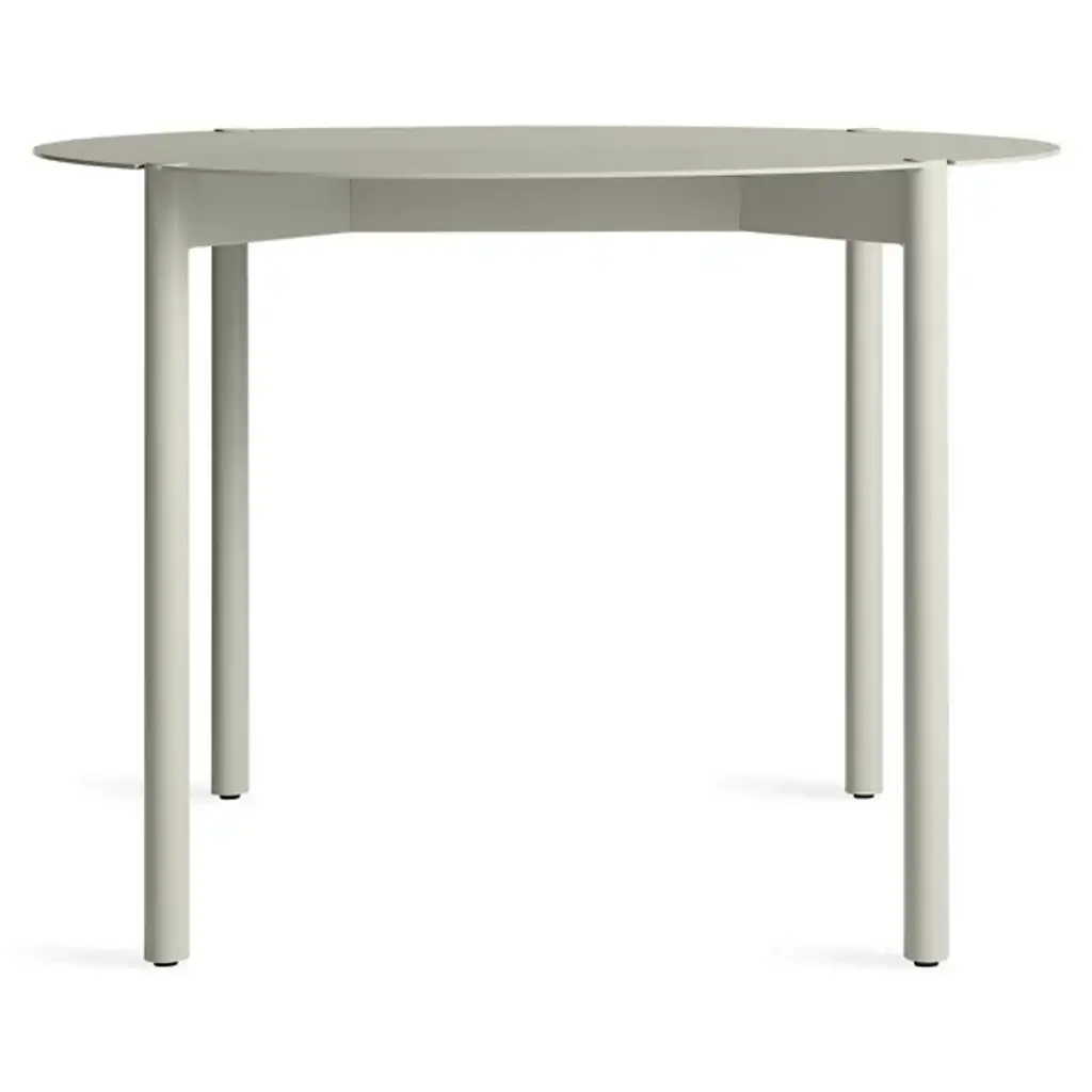The Comeuppance Round Dining Table from Blu Dot combines contemporary design and durability for a pleasant al fresco dining experience. Crafted with precision from powder-coated aluminum, this table is a testament to streamlined elegance. Made to elevate your outdoor and indoor dining spaces, Comeuppance boasts a wafer-thin design that adds a touch of sophistication to your setting. Its durable composition offers resilience against the elements. It is BIFMA Certified compliant.