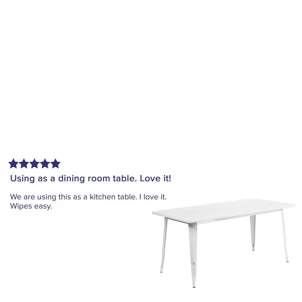 This rectangular, indoor-outdoor metal cafe-style table will add a pop of color and a touch of industrial chic to your business or your dining room at home. Measuring 31.5 inches wide by 63 inches long, this table will comfortably accommodate six chairs and features a smooth top with a 1 inch edge. A stabilizing brace underneath the top gives this table increased stability while still allowing ample leg room. A powder coat finish ensures easy maintenance and floor glides protect your floor by sliding smoothly when you need to move the table. Designed for both commercial and residential use, this space saving table is a great choice for coffee shops, outdoor bistros and your kitchen.