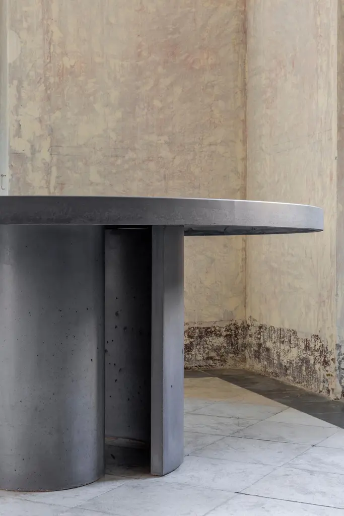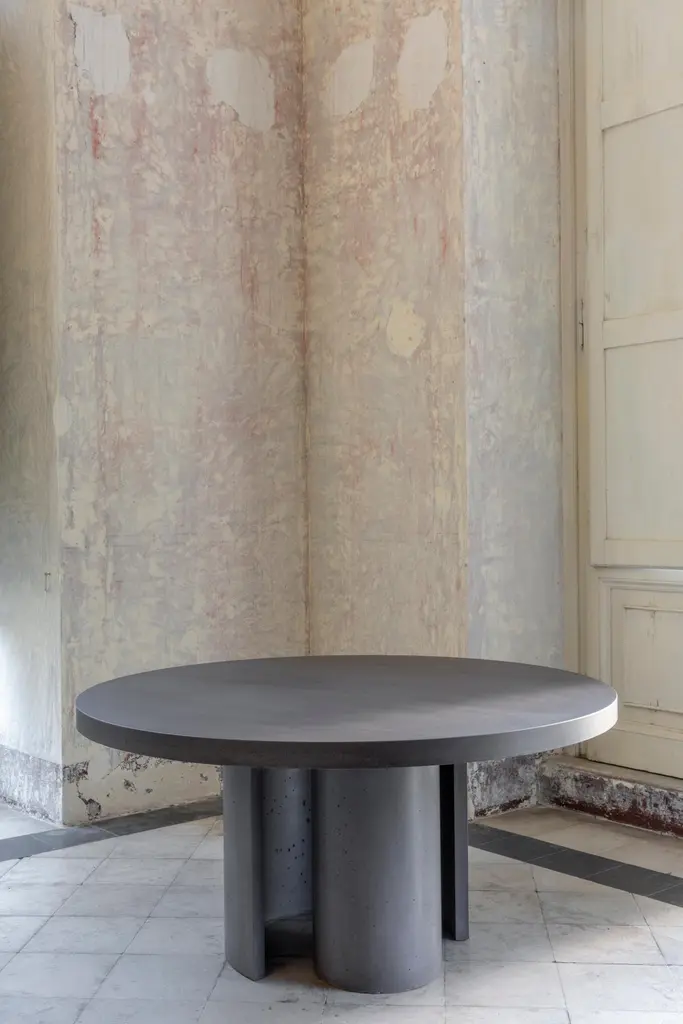 Atlante is a round dining table with essential lines and a strong inspiration. Completely fashioned in UHPC concrete mortar by a team of expert artisans, this table perfeclty emodies the values of the Euclide Collection in which it is inserted. Now available in a special gloss dark grey cement mortar."By hard fate, Atlante supports the very wide sky by making strength with his head he holds it up, with tireless arms; this fate was established for him by the shrewd Zeus" Matching a simple round top to a pair of different legs, Atlante combines perfeclty the sturdiness of the material to the lightness of its design. Designer: Gabriele De Chirico Use: Indoor / OutdoorProduction Time: From 7 to 8 weeks.