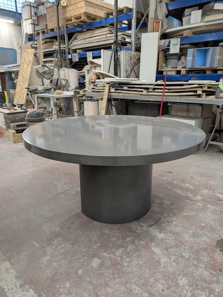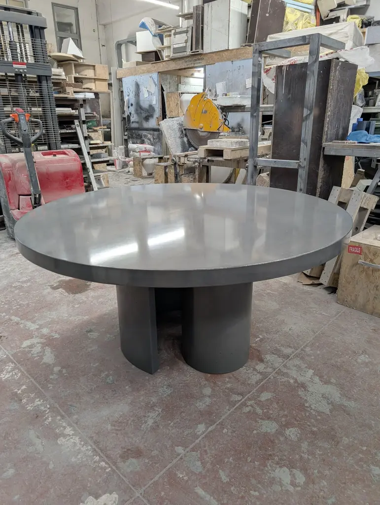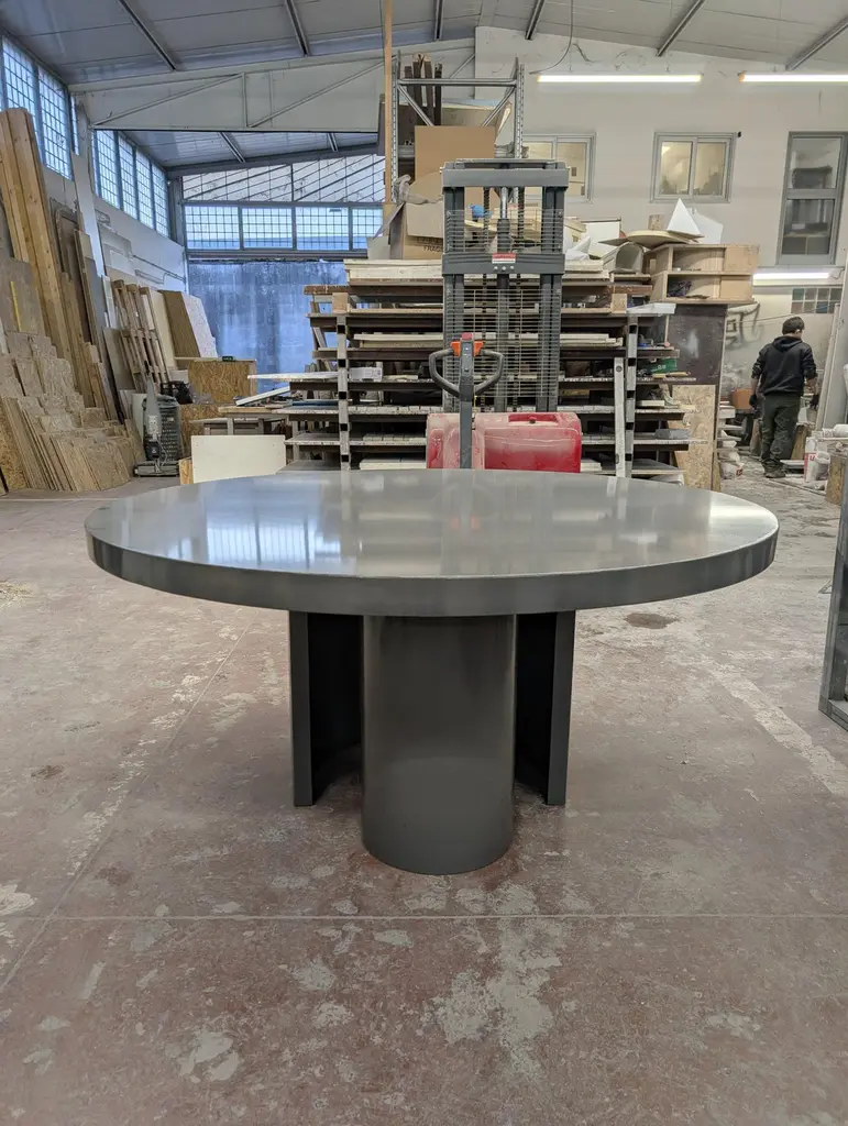 Concrete Circular Dining Table Atlante Ultra High Perfomance Gloss Cement