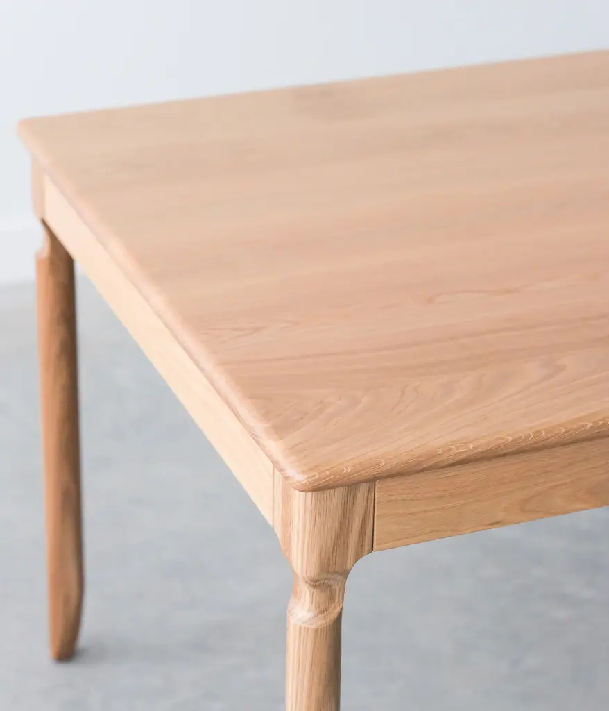 A modern take on the traditional cabriole leg. The table top profile has a rounded bullnose, mimicking the curves in the legs. Like all of our dining tables, the Condesa is built from solid hardwood. Legs detach for easy moving.