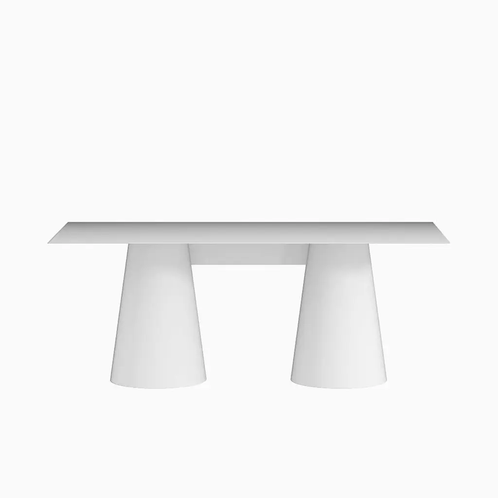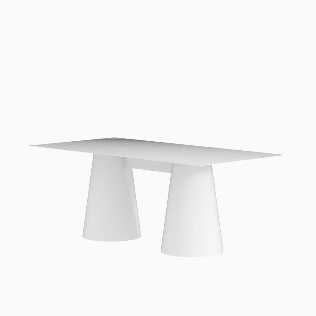 The Conic Dining Table is a monolithic piece conceptualized as a dining table suitable for both, indoor and outdoor. Crafted by hand in galvanized aluminum and coated with a matte electrostatic finish it's size can be customized.The Tripod Dining Table seats 8 humans.